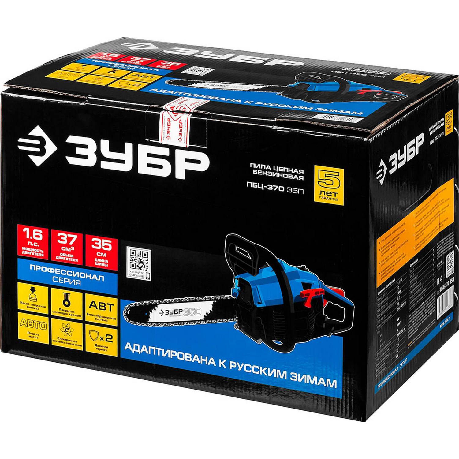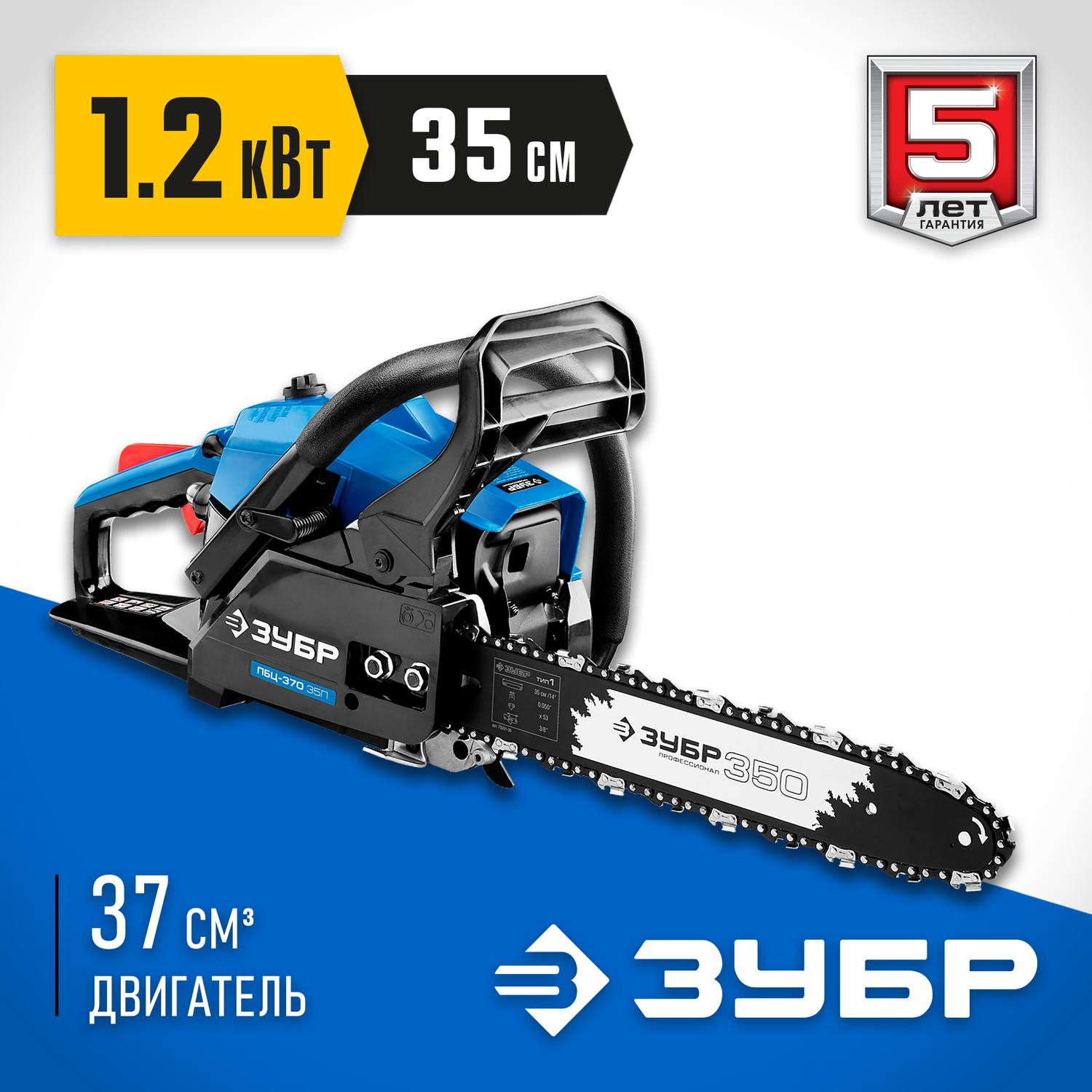 Пила цепная бензиновая, ЗУБР Профессионал ПБЦ-370 35П, хромир. цилиндр, праймер, 37 см3 (1,2 кВт), шина 35 см, 10800 об/мин