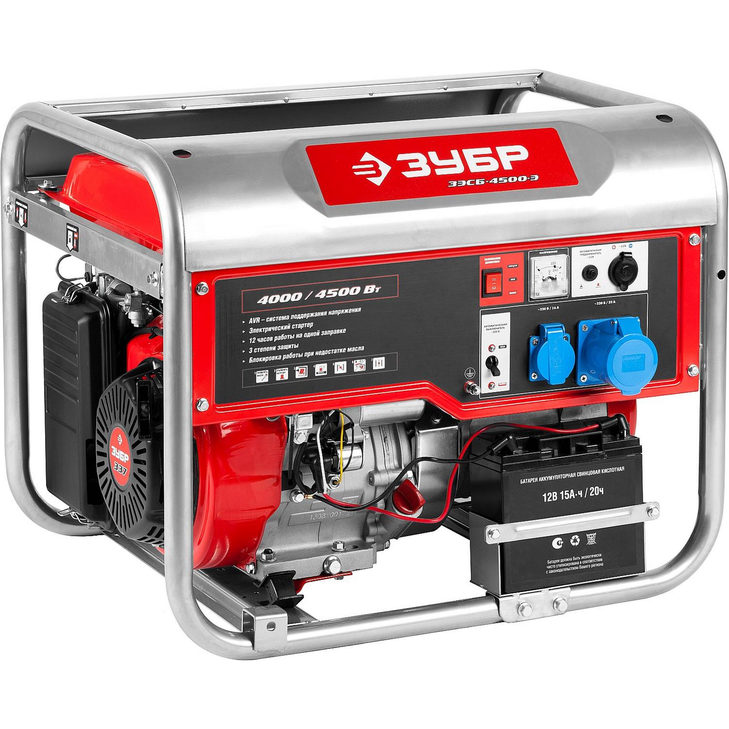 Бензиновый генератор с электростартером, 4500 Вт, ЗУБР {ЗЭСБ-4500-Э}