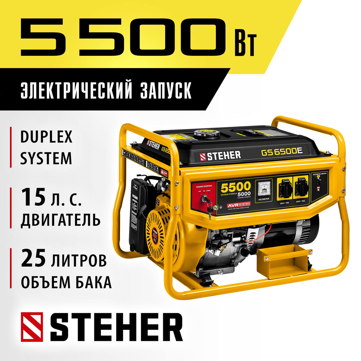 GS-6500Е бензиновый генератор с электростартером, 5500 Вт, STEHER {GS-6500Е}