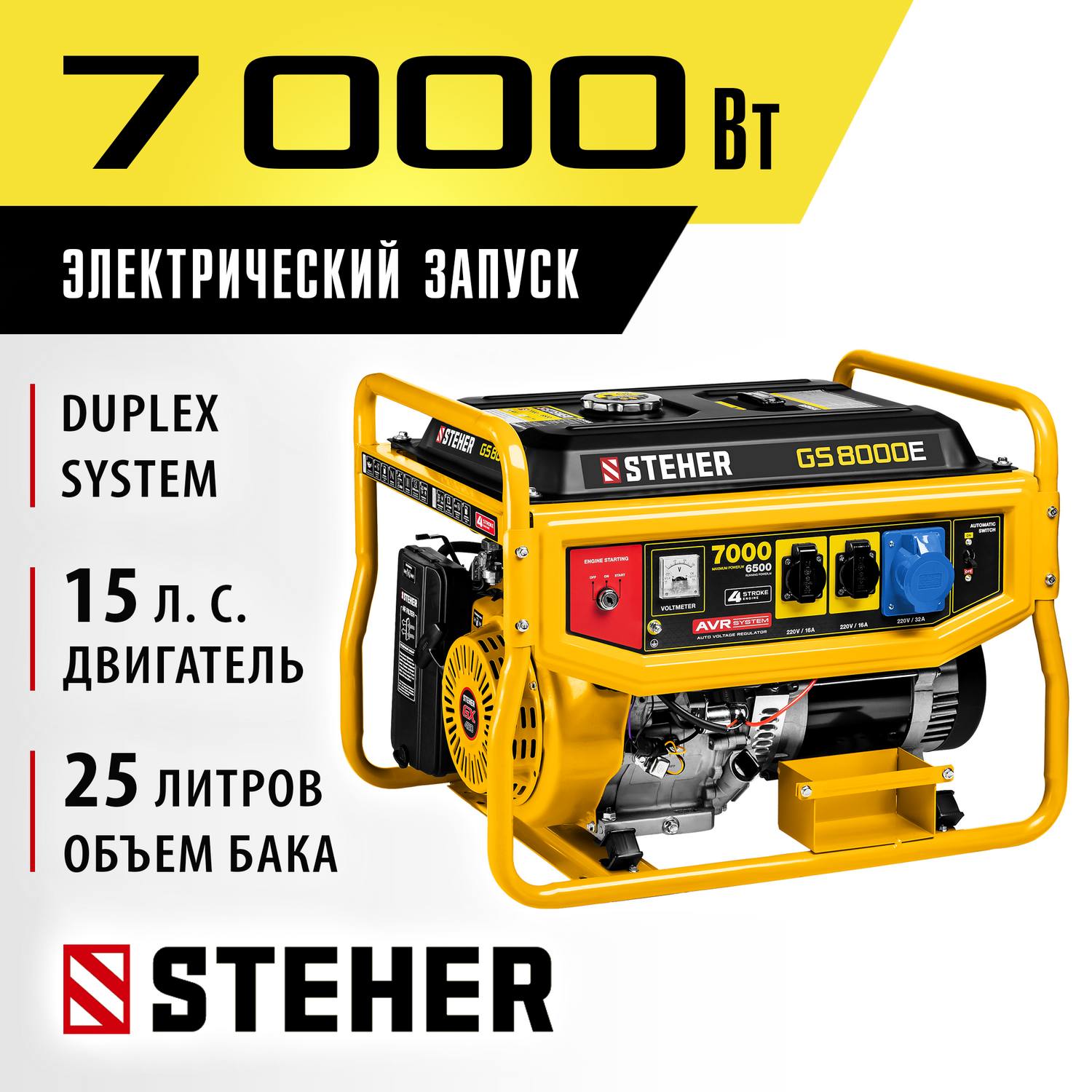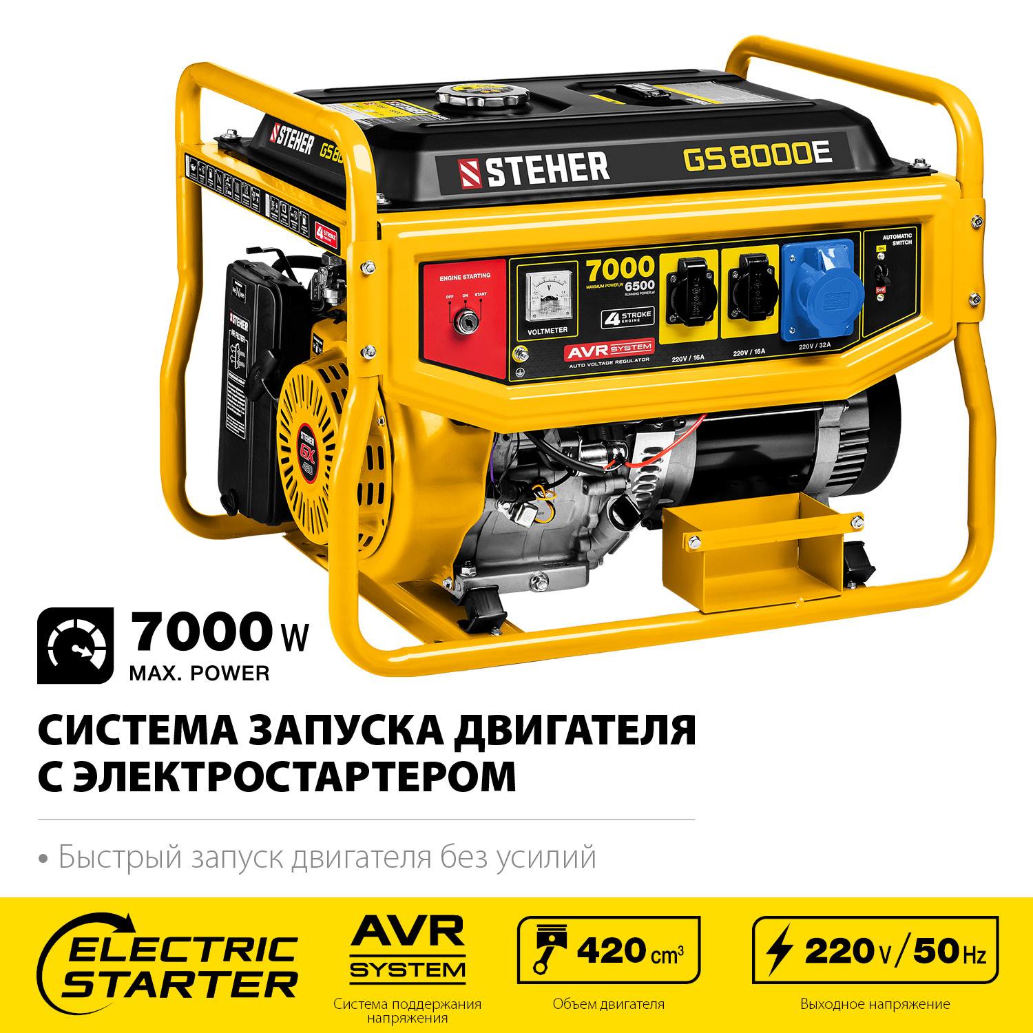 GS-8000Е бензиновый генератор с электростартером, 7000 Вт, STEHER {GS-8000Е}