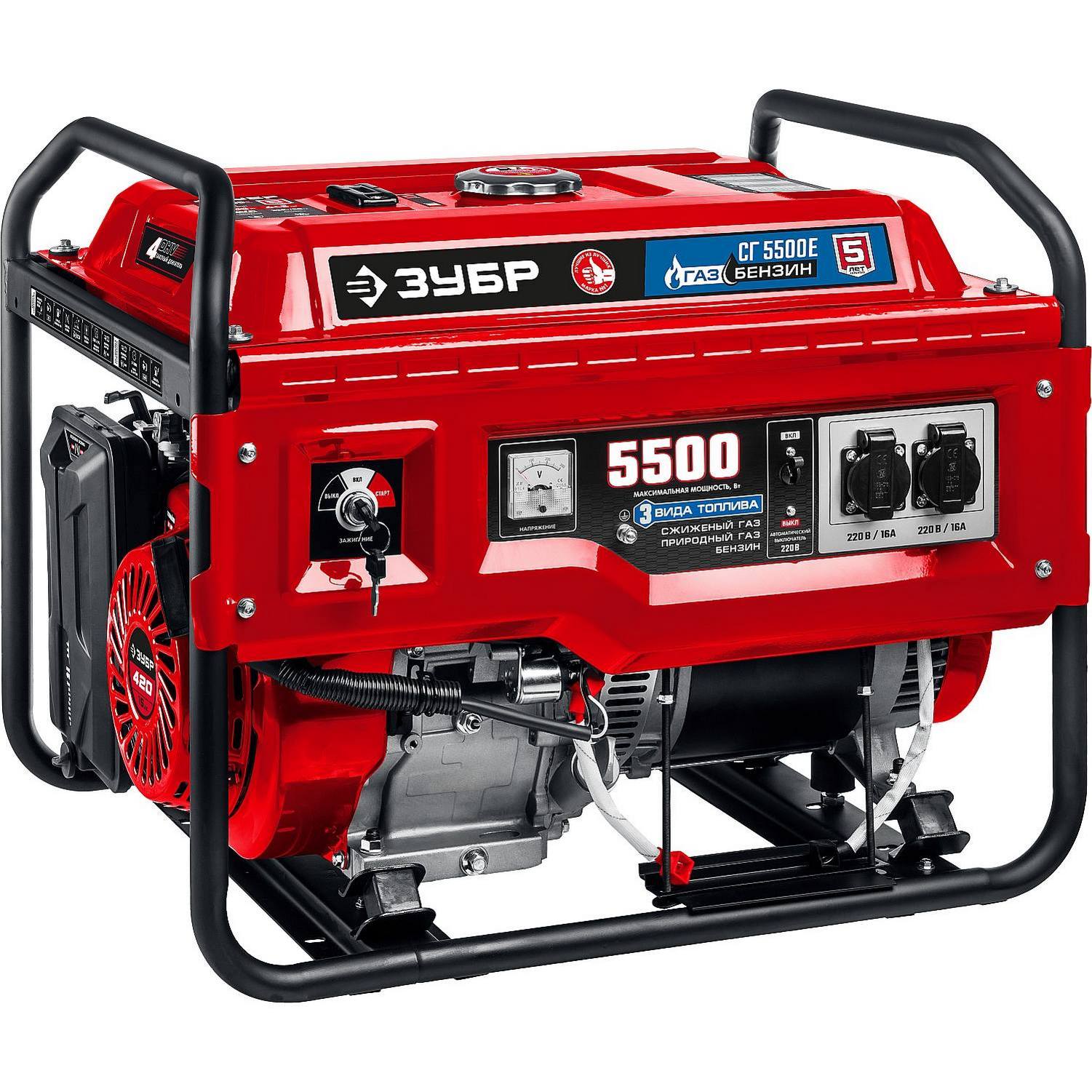 ЗУБР 5500 Вт, газовый генератор с электростартером (сжиженный газ / природный газ / бензин) (СГ-5500Е)