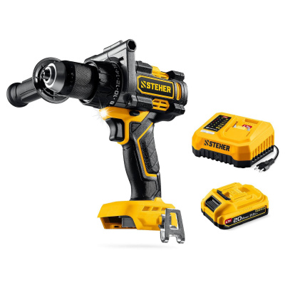 STEHER 20 В, 165 Н·м, 1 АКБ LMS (2 А·ч), бесщеточная дрель-шуруповерт {CB-165-21}