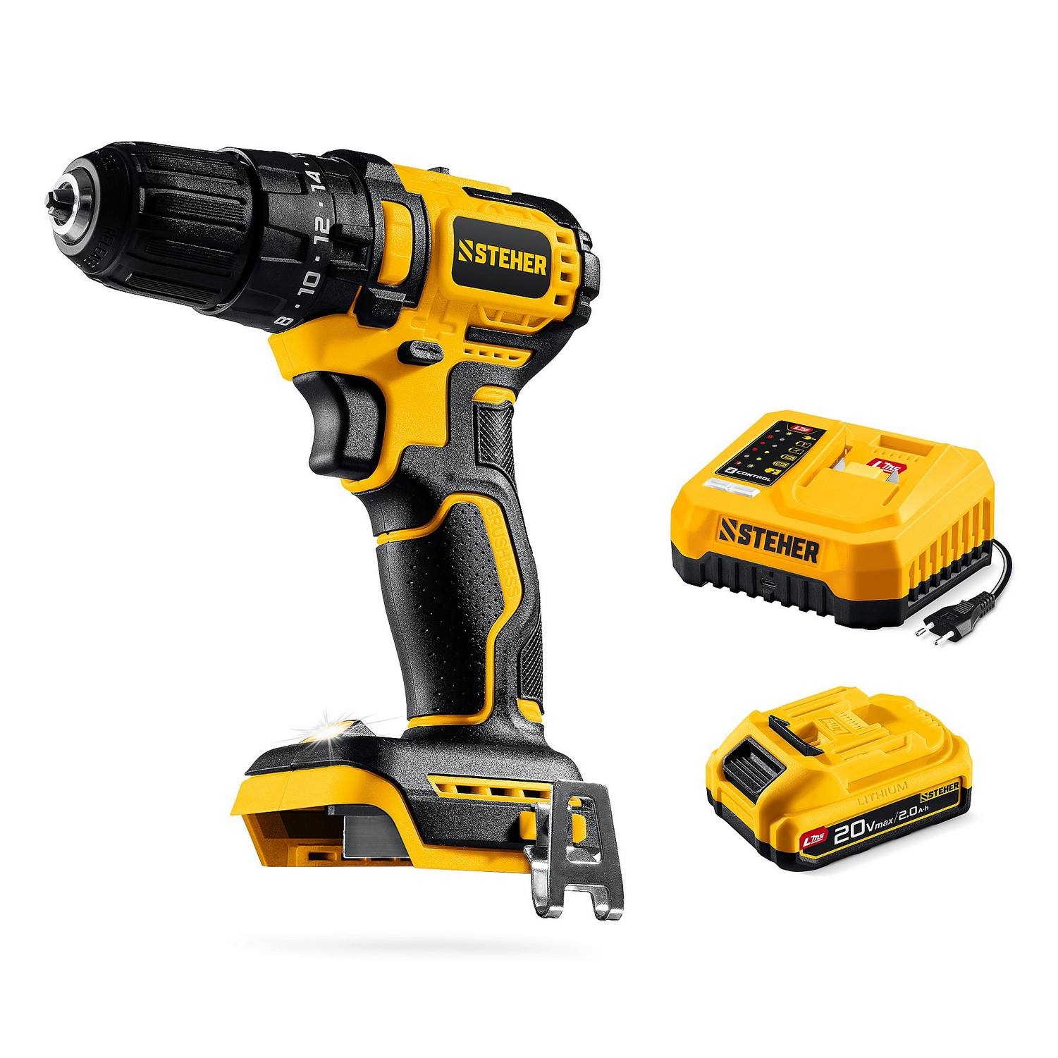 STEHER 20 В, 45 Н·м, 1 АКБ LMS (2 А·ч), бесщеточная ударная дрель-шуруповерт {CBS-45-21}