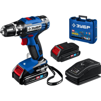 ЗУБР 20В, 2 АКБ (2Ач), в кейсе, дрель-шуруповерт, Профессионал. DL-201-22 {DL-201-22}