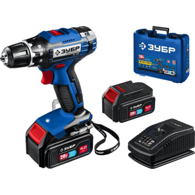 ЗУБР 20В, 2 АКБ (4Ач), в кейсе, дрель-шуруповерт, Профессионал. DL-201-42 {DL-201-42}
