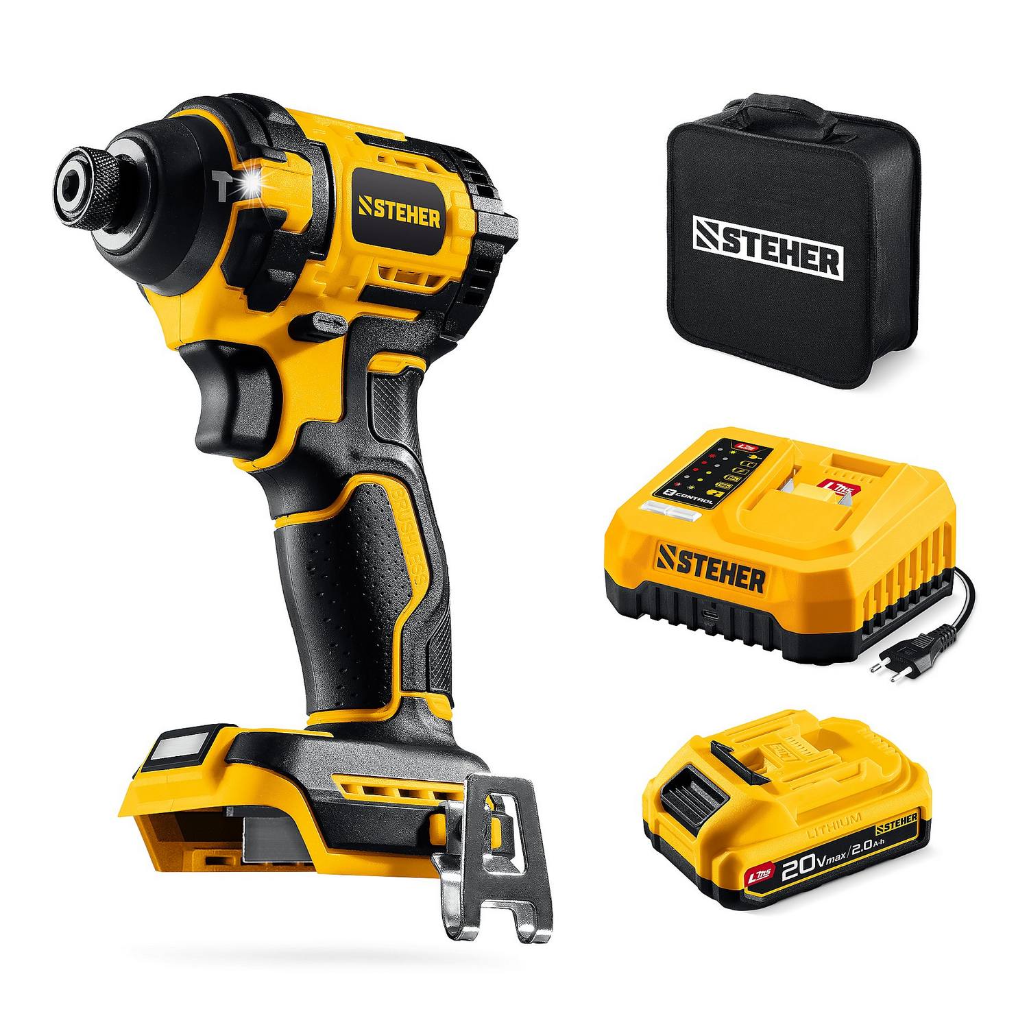 STEHER 20 В, 180 Н·м, 1 АКБ LMS (2 А·ч), бесщеточный ударный винтоверт, сумка {CSB-180-21}