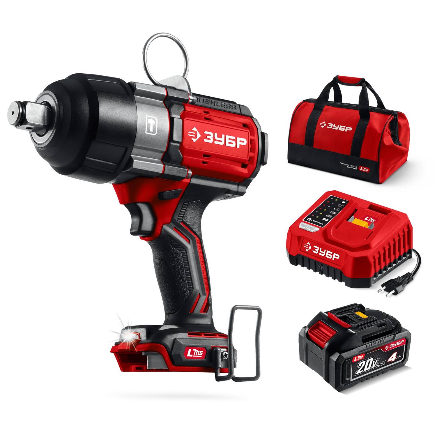 ЗУБР 20 В, 1000 Н·м, 1 АКБ LMS (4 А·ч), бесщеточный ударный гайковерт, сумка {ГБУ-1000-41}
