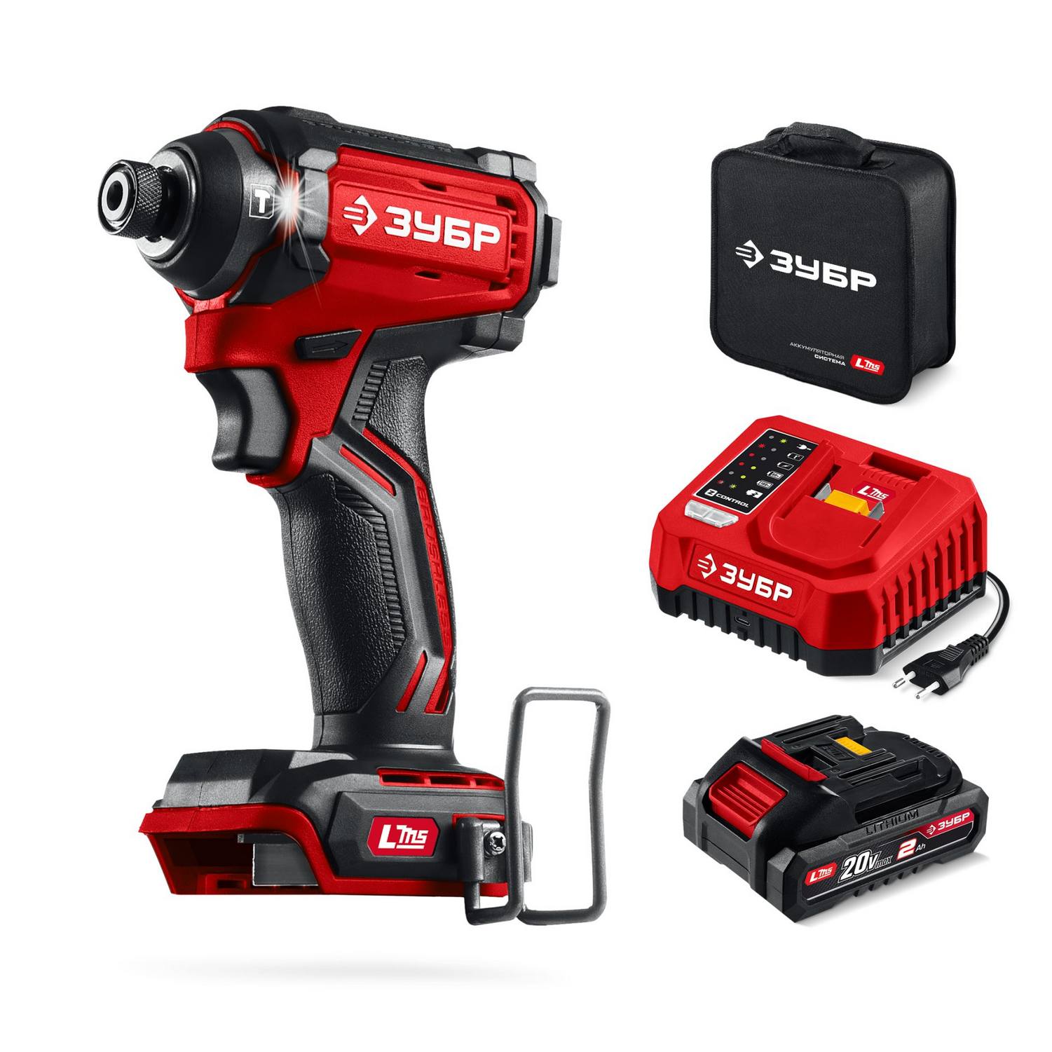 ЗУБР 20 В, 180 Н·м, 1 АКБ LMS (2 А·ч), бесщеточный ударный винтоверт, сумка {ВБУ-180-21}