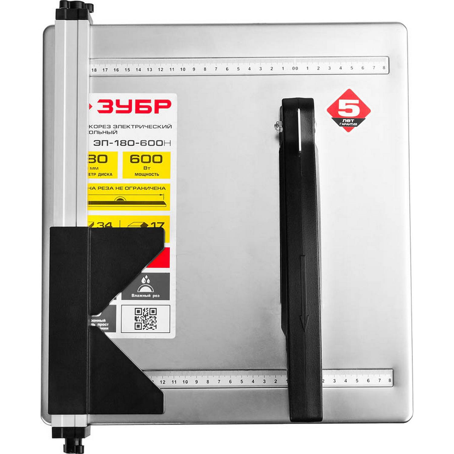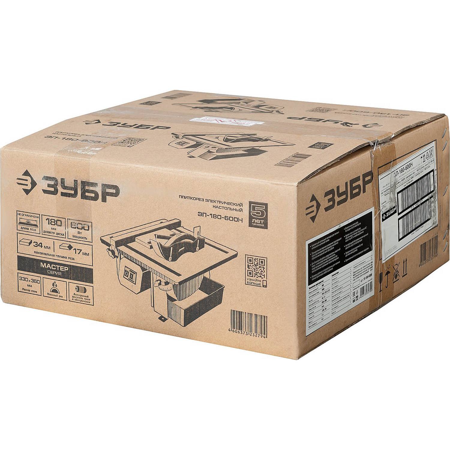 Электроплиткорез ЗУБР "Мастер", диск 180 мм, глубина реза 90°-34мм/45°-17мм, стол 330х360мм, 2950об/мин, 600Вт