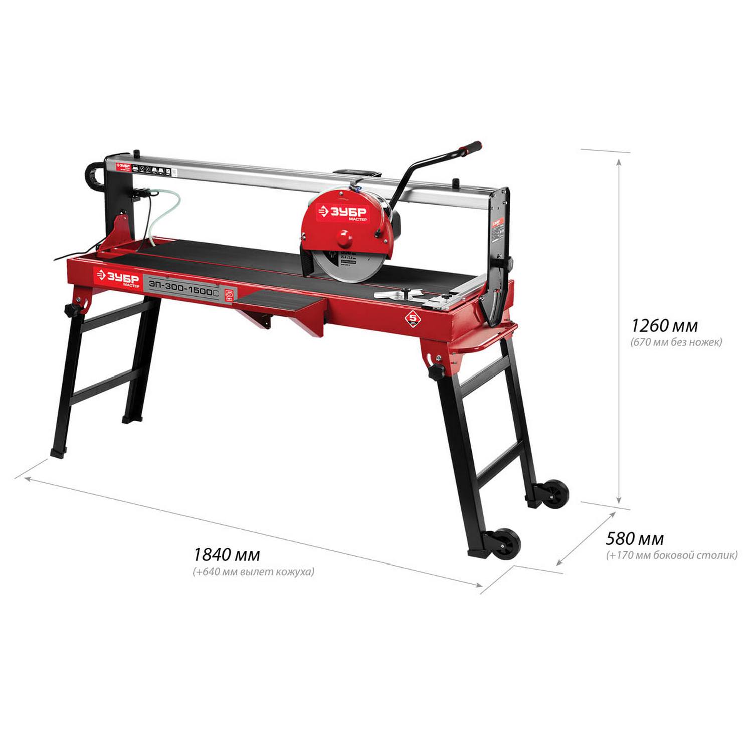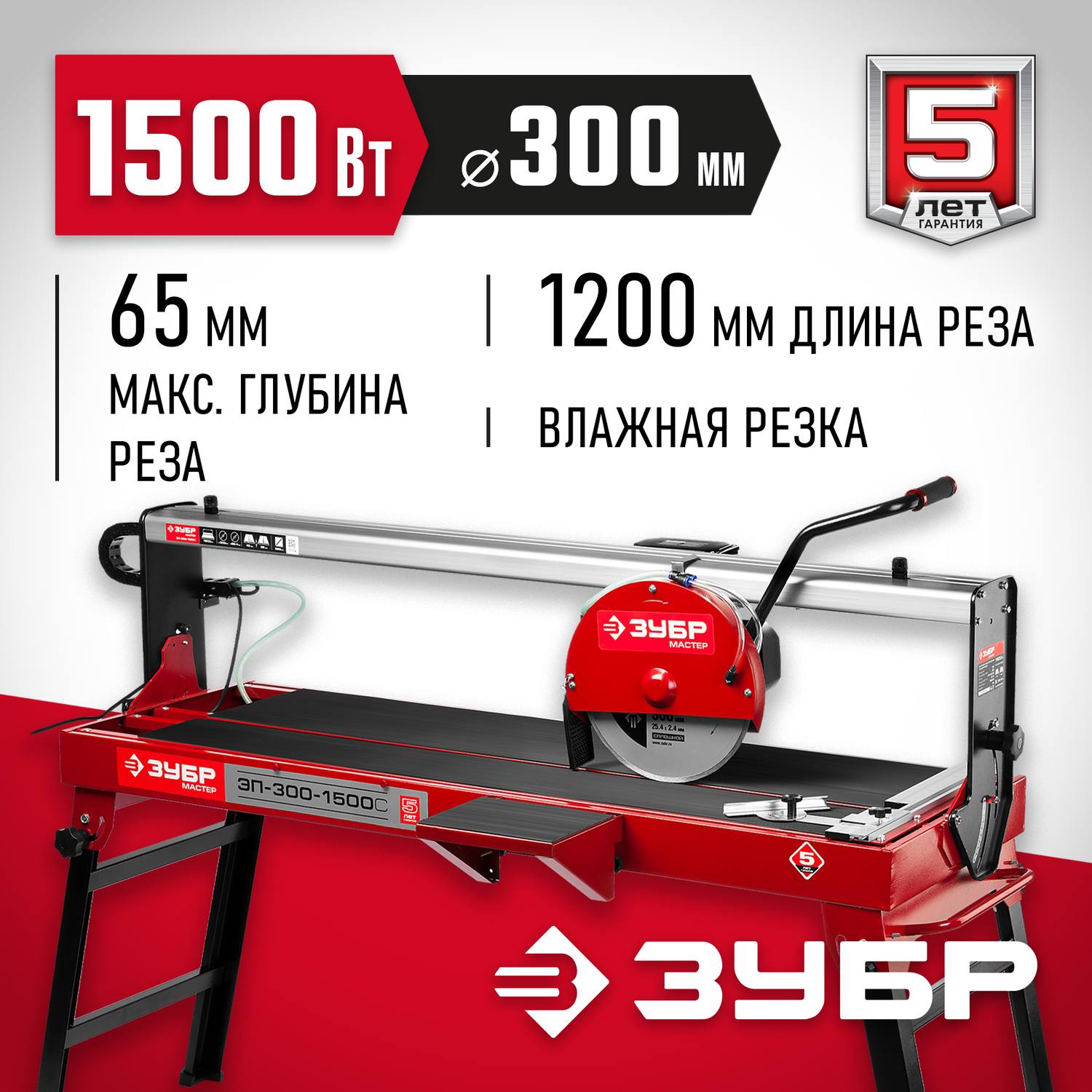 Электроплиткорез ЗУБР "Мастер", длина реза 1200 мм, диск 300 мм, глубина реза 90°-65мм/45°-40 мм, стол 1260x468 мм, 1500Вт