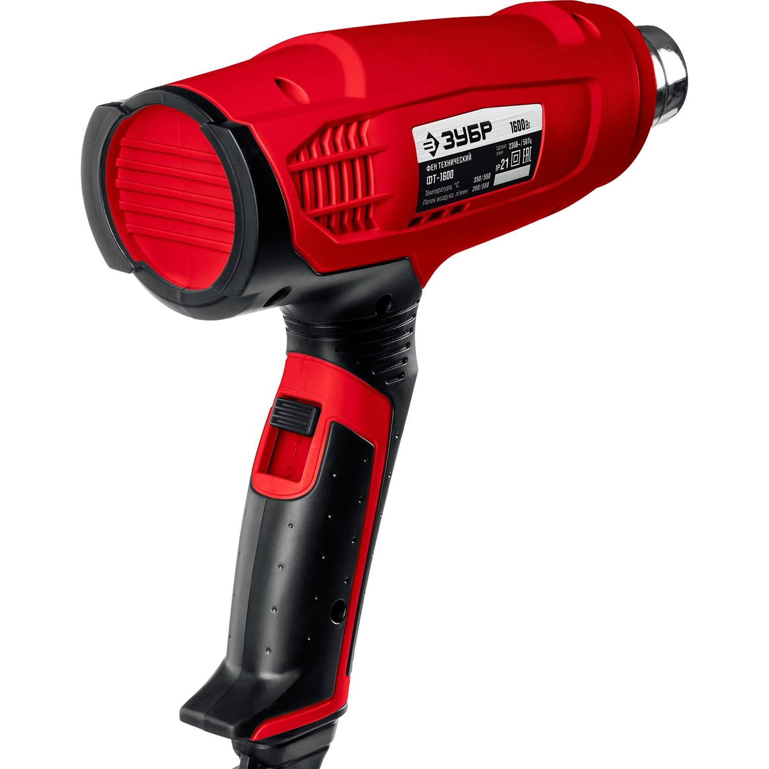 Фен технический (строительный), ЗУБР ФТ-1600, насадки 3 шт, 2 режима: 350град/ 350л/мин, 550град/ 550л/мин, коробка, 1600Вт