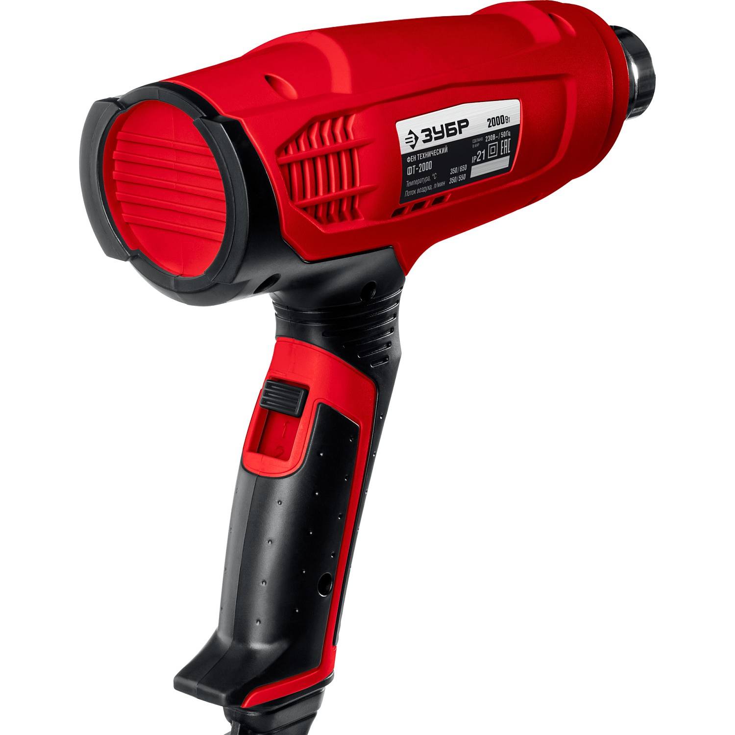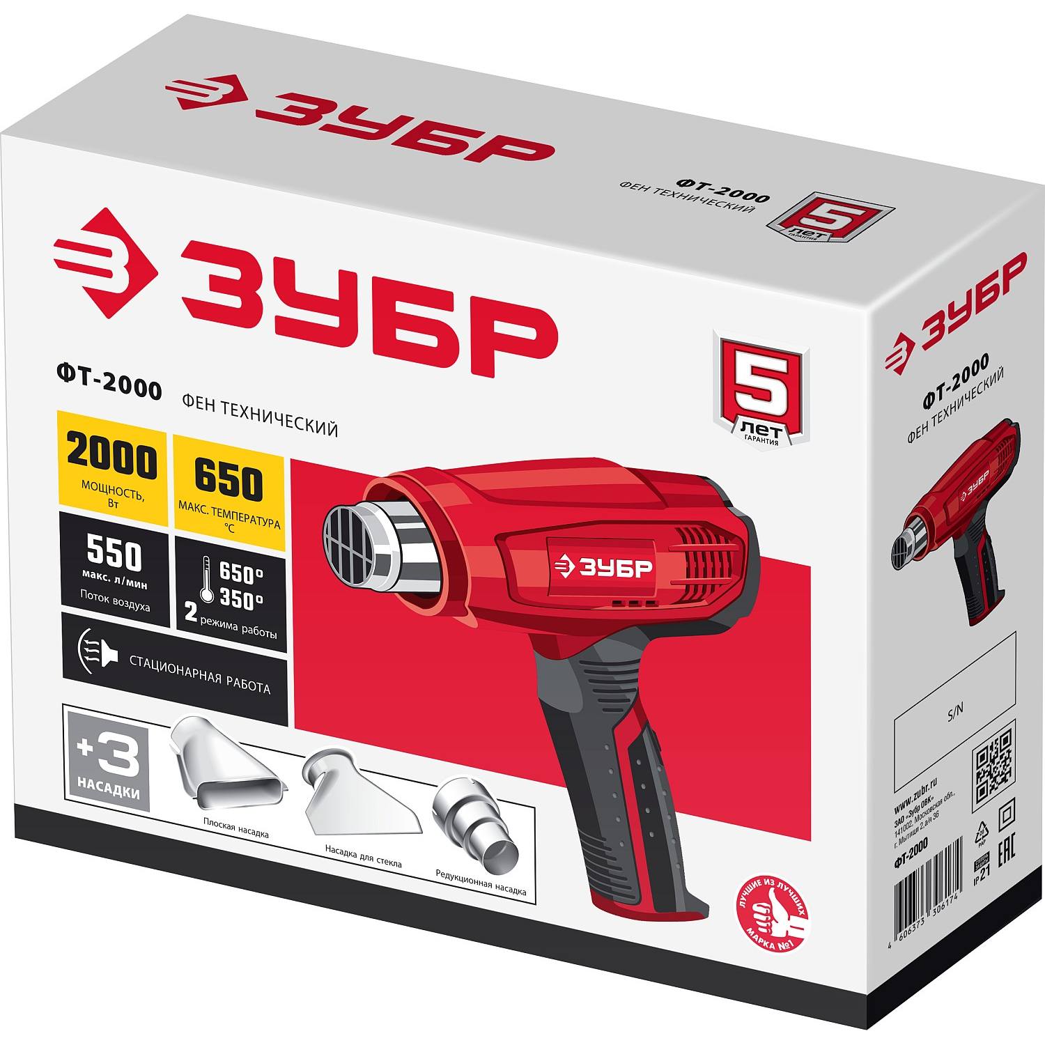 Фен технический (строительный), ЗУБР ФТ-2000, насадки 3 шт, 2 режима: 350град/ 350л/мин, 650град/ 550л/мин, коробка, 2000Вт
