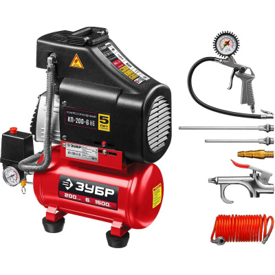 Компрессор воздушный безмасляный с набором аксессуаров, 200 л/мин, 6 л, 1500 Вт, ЗУБР {КП-200-6 Н6}