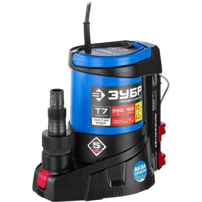 ЗУБР Профессионал НПЧ-Т7-550 АкваСенсор дренажный насос, с регул. датчиком уровня и мин. уровнем откачки до 1 мм, 550 Вт