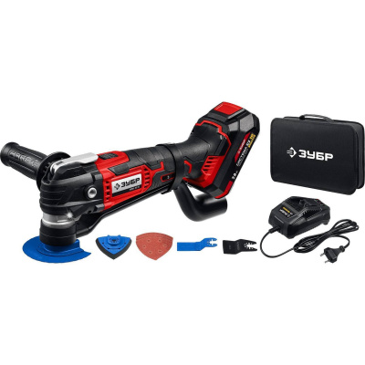 ЗУБР 18 В, 1 АКБ (2Ач), реноватор, набор насадок, сумка, система АКБ С1-18 {МФИ-18-21}