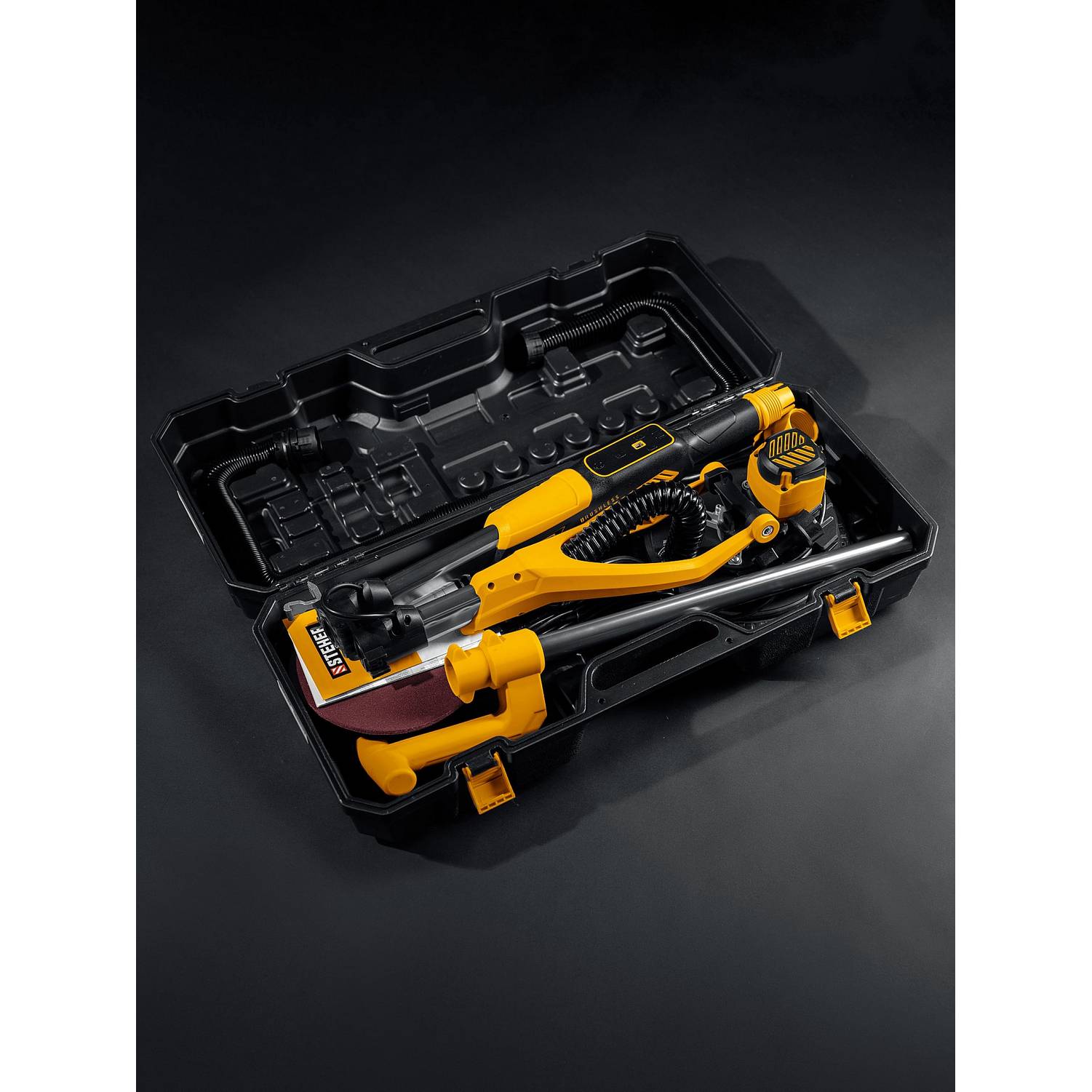 STEHER d225 мм, 500 Вт, подсветка, бесщеточная шлифовальная машина для стен (жираф), кейс (DWB-500)