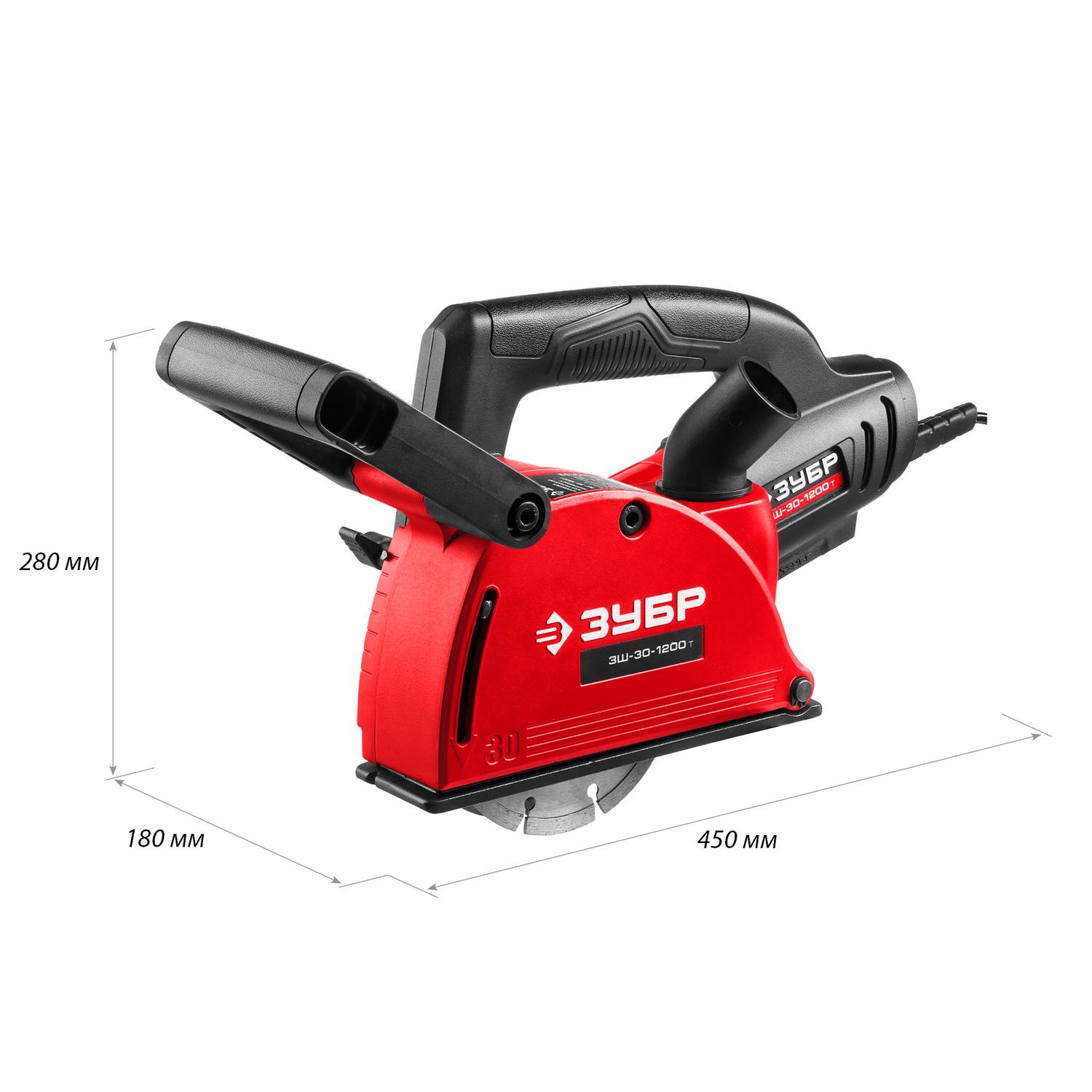 Штроборез (бороздодел), ЗУБР ЗШ-30-1200 Т, макс. глубина паза 30 мм, 125 мм, пылезащита, подключение пылесоса, защита от перегрузки, 1200 Вт