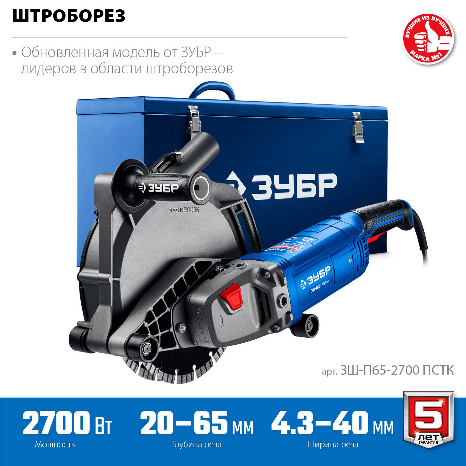 ЗУБР d 230 мм, 2700 Вт, 65 мм, штроборез (бороздодел), метал. ящик, Профессионал {ЗШ-П65-2700 ПСТК}