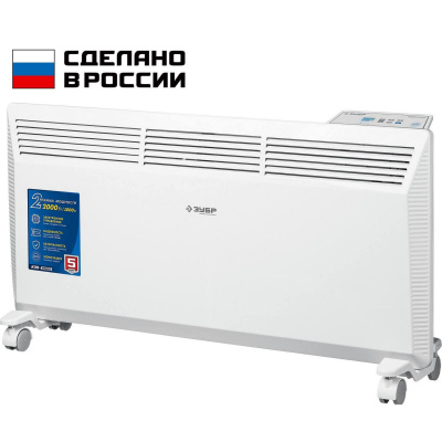 Электрический конвектор ЗУБР КЭП-2000 мощностью 2000 Вт, предназначен для обогрева любых домашних и офисных помещений площадью до 25 кв.м. Электронный терморегулятор (с дисплеем) и ионизация воздуха обеспечит равномерный нагрев помещения. 2 режима нагрева (полной и половинной мощности), защита от опрокидывания, кронштейн для крепления к стене, ролики. Конвектор работает бесшумно, имеет высокий ресурс. Используется в районах с умеренным климатом с характерной температурой от -20 до +40 °С, относительной влажностью воздуха не более 80%, отсутствием прямого воздействия атмосферных осадков и чрезмерной запыленности воздуха.