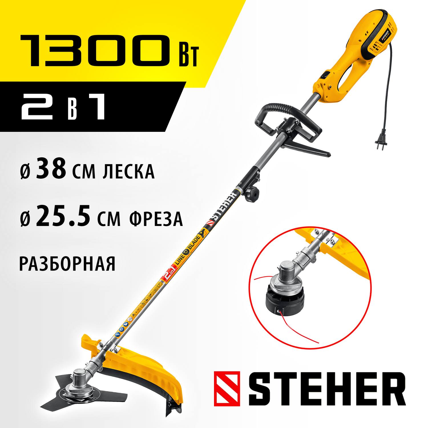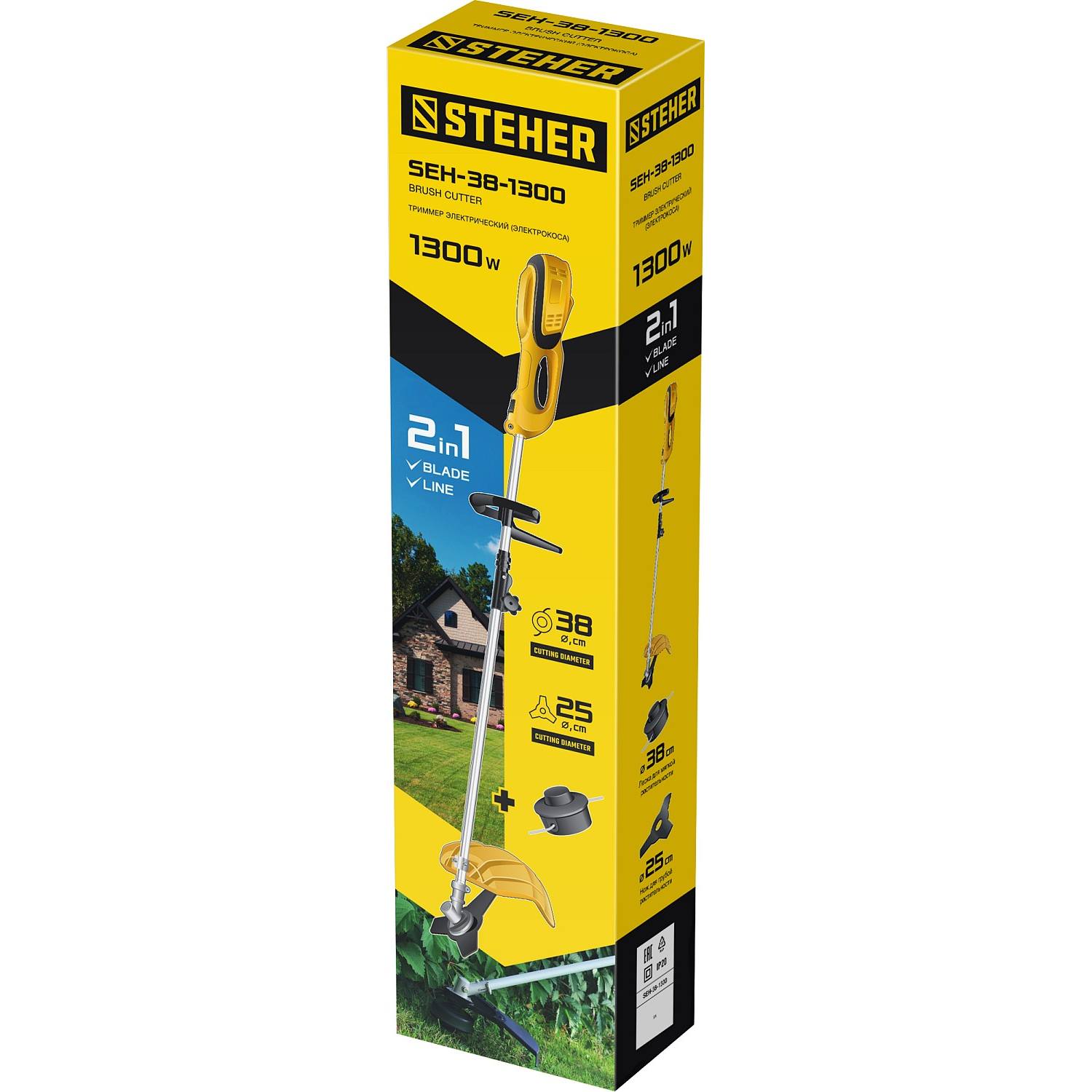 Электрический триммер STEHER SEH-38-1300, предназначен для кошения растительности на садовых участках и газонах.