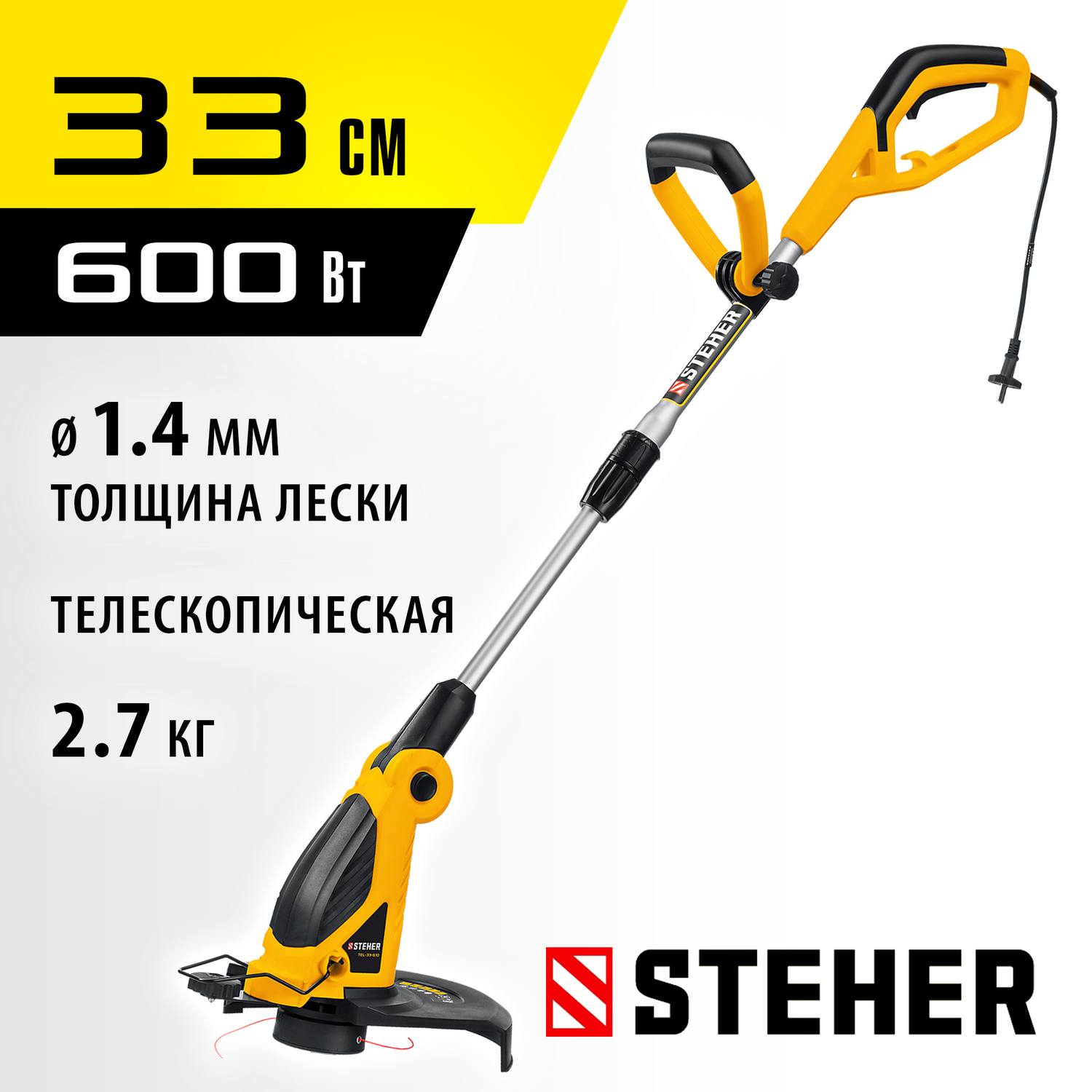 STEHER 600 Вт триммер сетевой, ш/с 33 см {TEL-33-610}