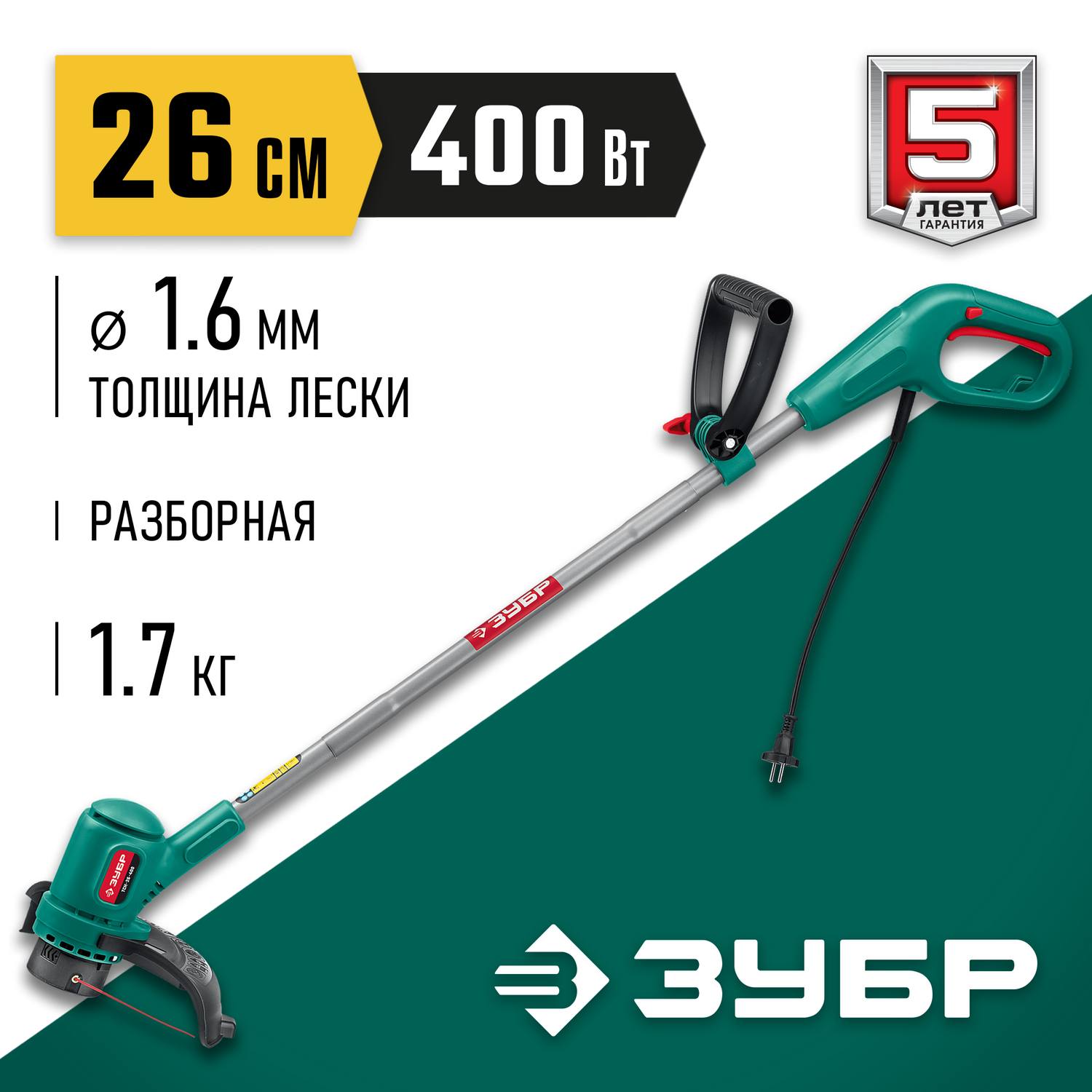 ЗУБР 400 Вт триммер сетевой, ш/с 26 см {ТСН-26-400}