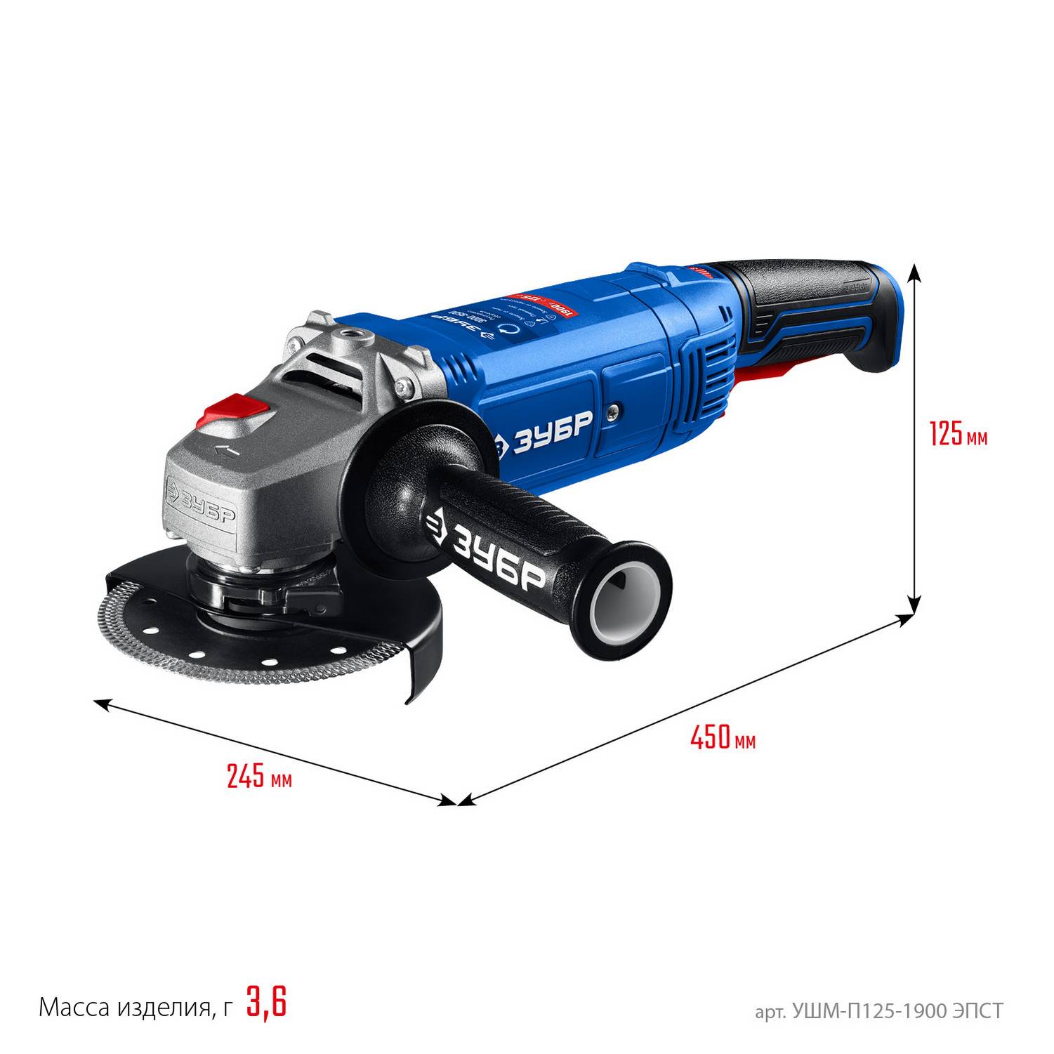 ЗУБР 1900 Вт, d125 мм, УШМ, регулировка оборотов, Профессионал {УШМ-П125-1900 ЭПСТ}