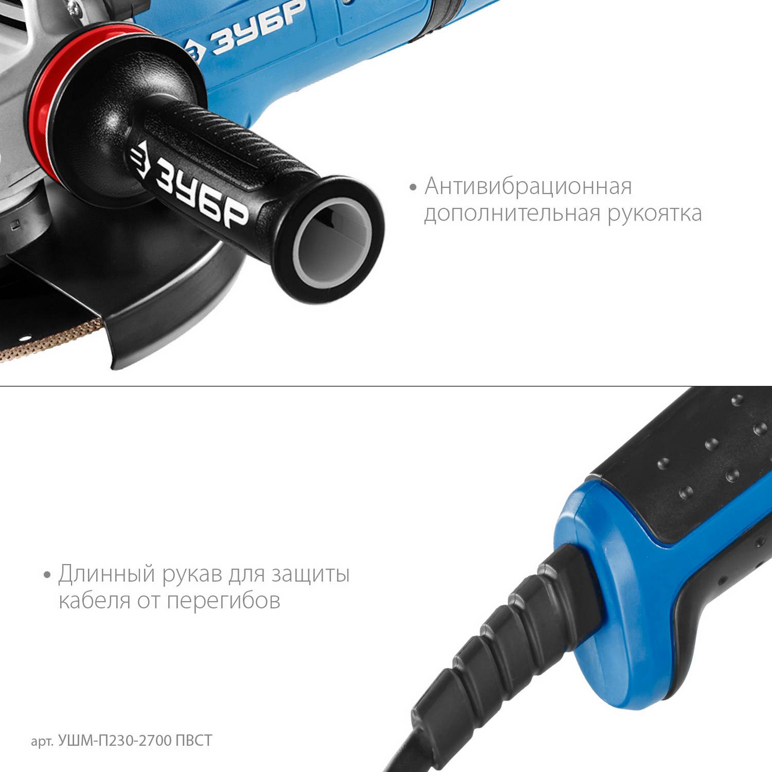 ЗУБР 2700 Вт, d230 мм, УШМ, АВТ защита, фланец "МИГ", Профессионал {УШМ-П230-2700 ПВСТ}