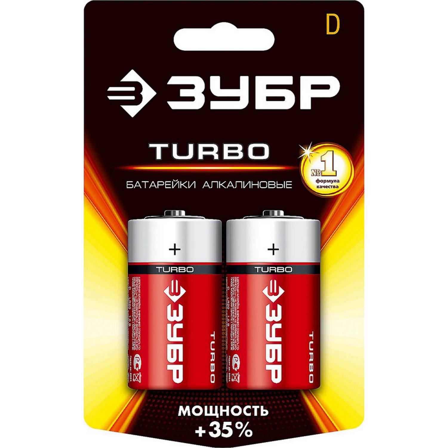 Щелочная батарейка 1.5 В, тип D, 2 шт, ЗУБР Turbo {59217-2C_z01}