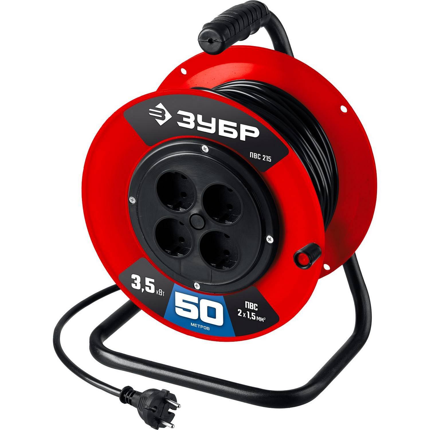 Силовой удлинитель на катушке ЗУБР ПВС 2х1.5 50м 3500Вт, ПВС 215 {55103-50}