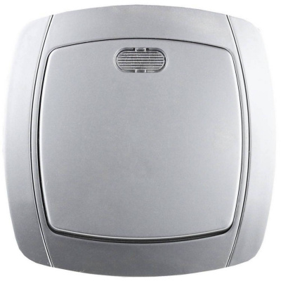 СВЕТОЗАР Акцент, одноклавишный в сборе, с подсветкой, цвет серебристый металлик, 10 А/~250 В, электрический выключатель (SV-54231-SM)