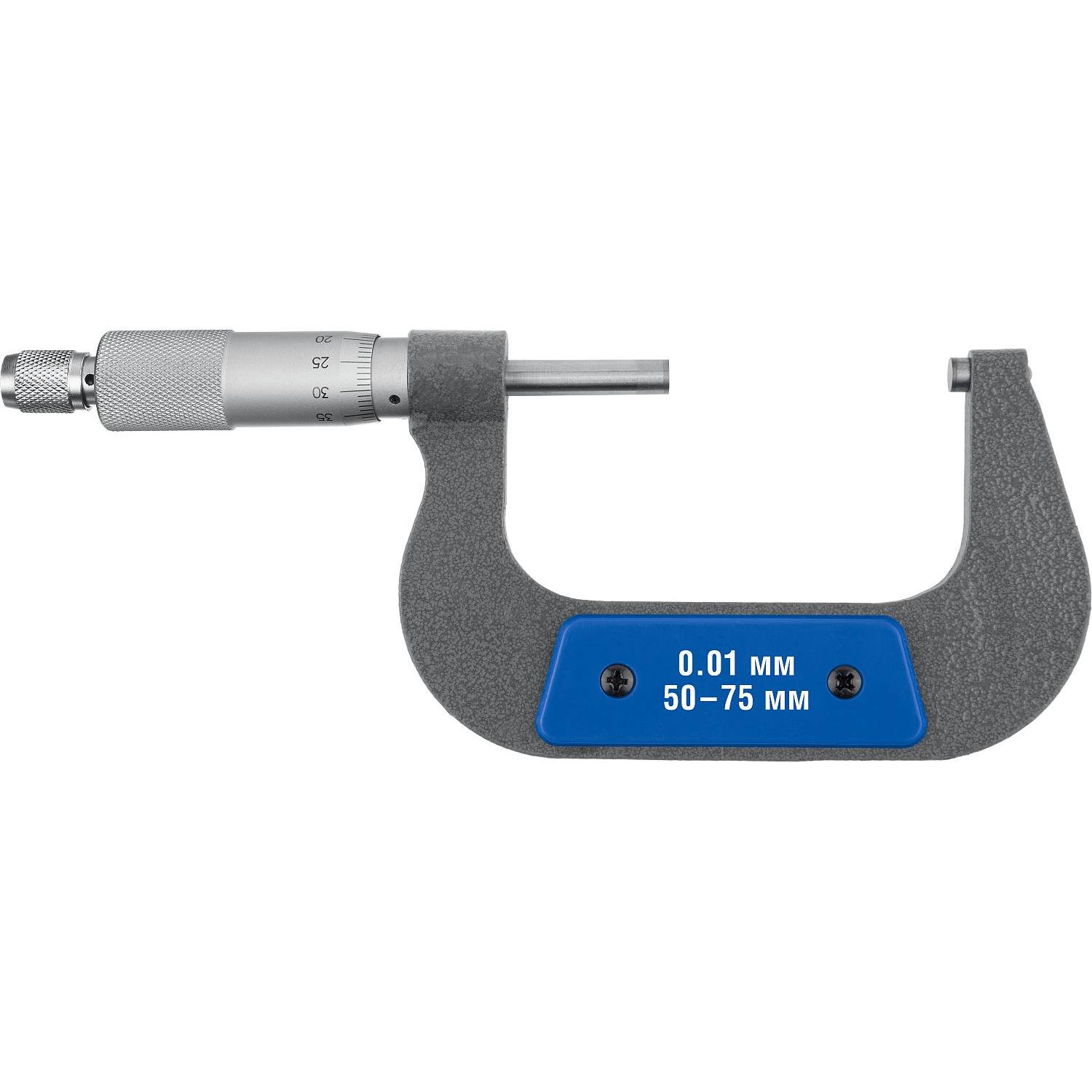 Микрометр ЗУБР "Профессионал" гладкий механический, МК 75, диапазон 50-75мм, шаг измерения 0,01мм {34480-75_z02}