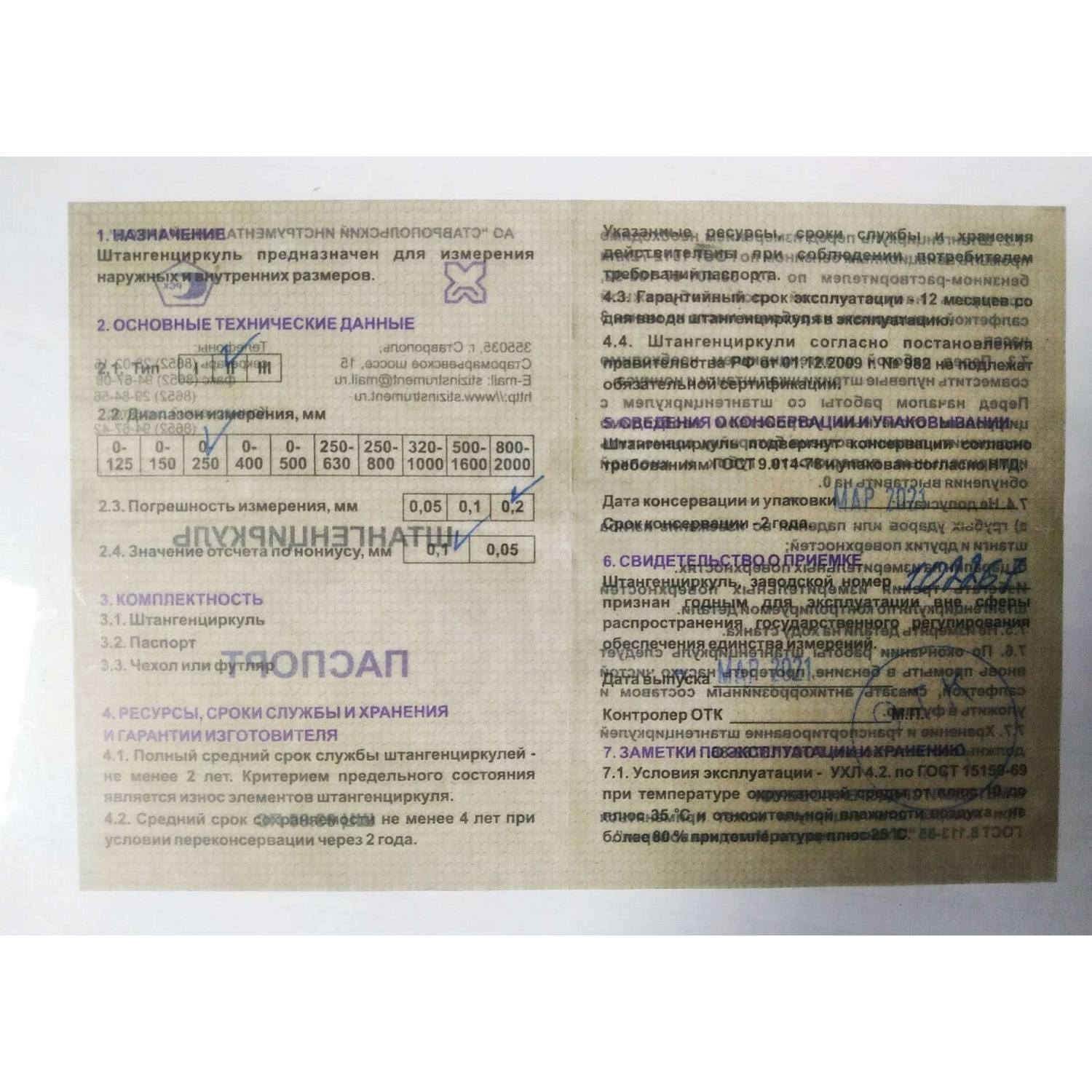 Штангенциркуль металлический тип 1, 250мм {3445-250}
