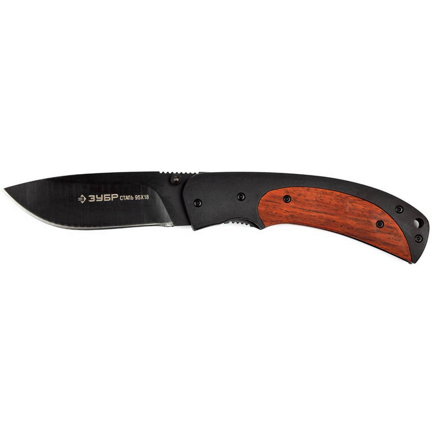ЗУБР Норд, 190 мм, лезвие 80 мм, металлическая рукоятка с деревянными вставками, складной нож (47708)