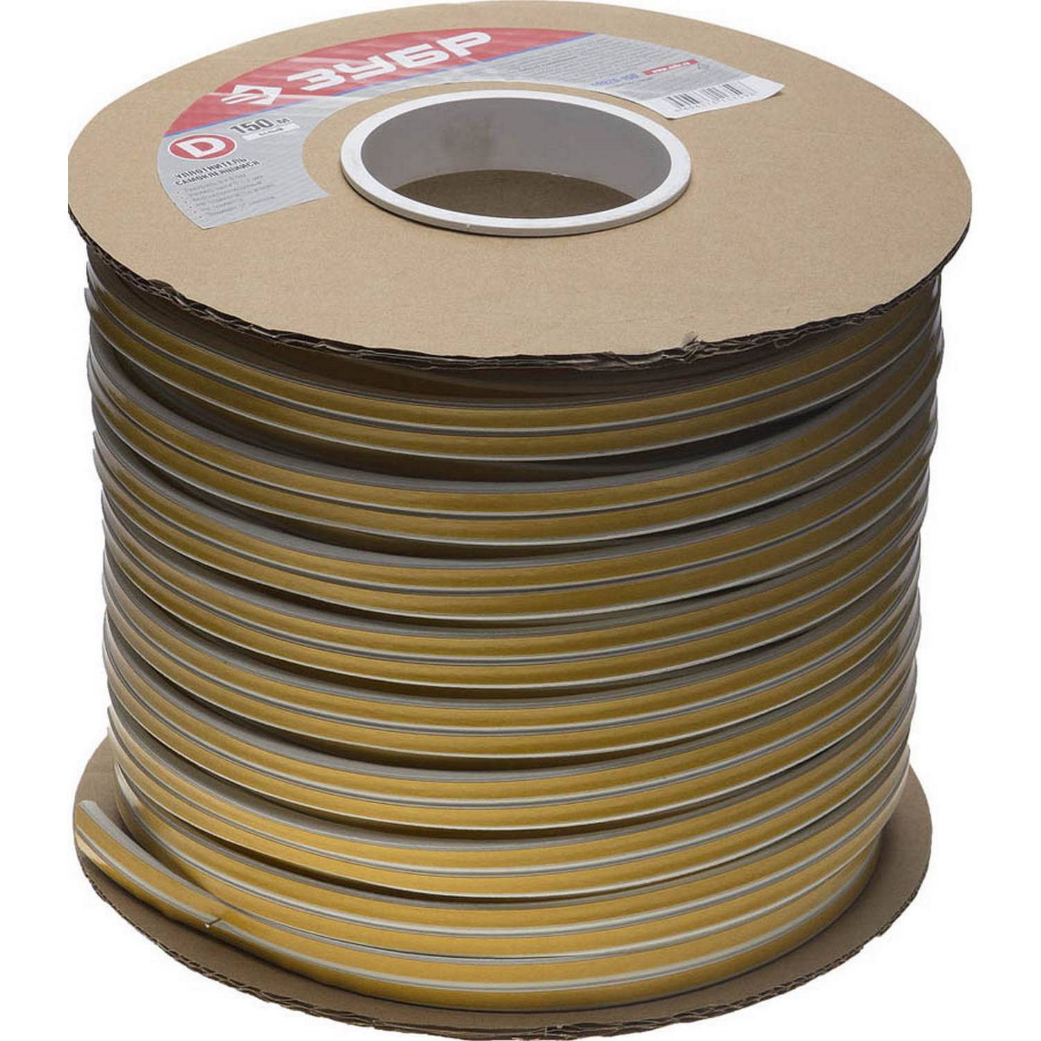 Уплотнитель ЗУБР резиновый самоклеящийся, профиль "D", белый, 150м {40920-150}