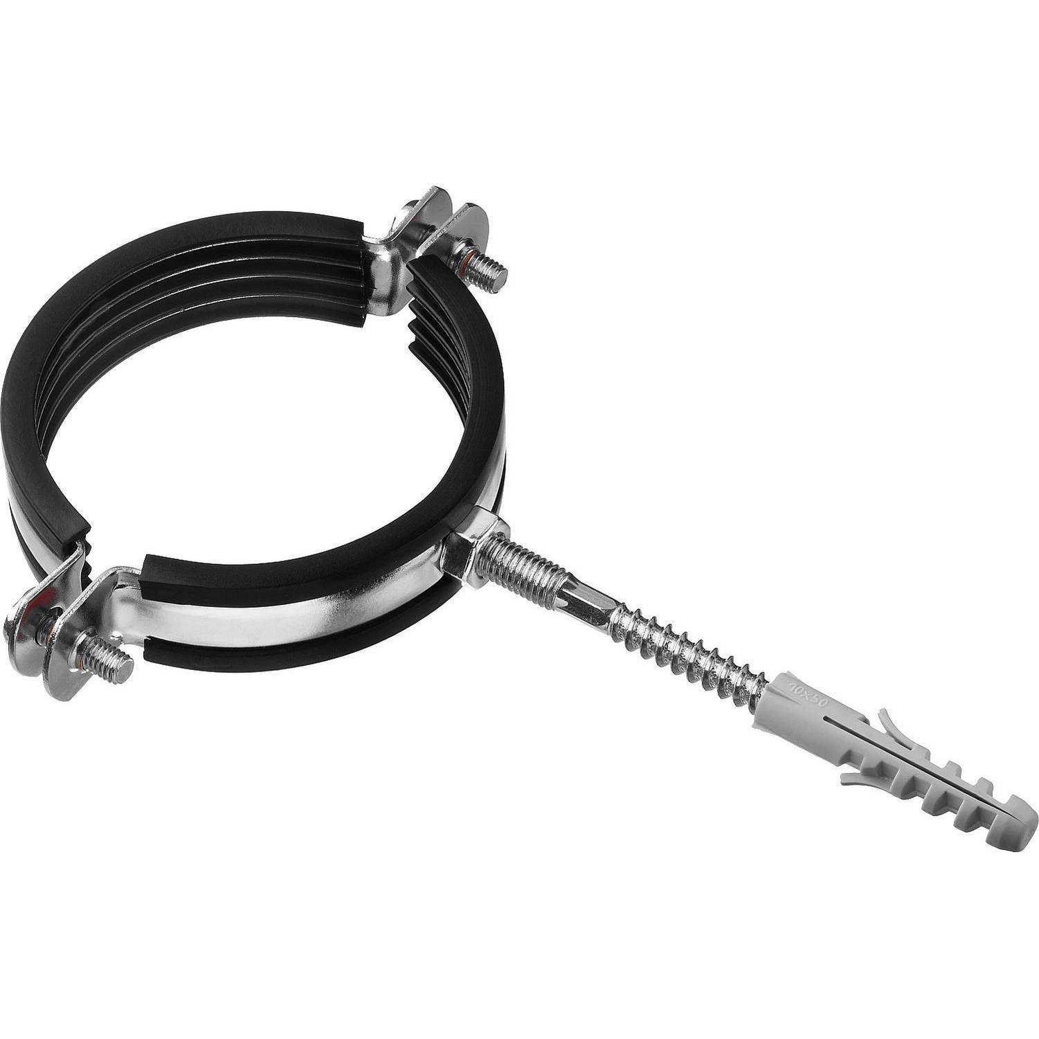 Стальные трубные хомуты способны выдерживать большие нагрузки и обеспечивают надежность крепления труб различного назначения к любым основаниям. Труба прочно фиксируется внутри хомута с помощью метрических винтов. Уплотнитель из высококачественной резины обеспечивает идеальную шумоизоляцию. Ширина ленты хомута составляет 20 мм.
