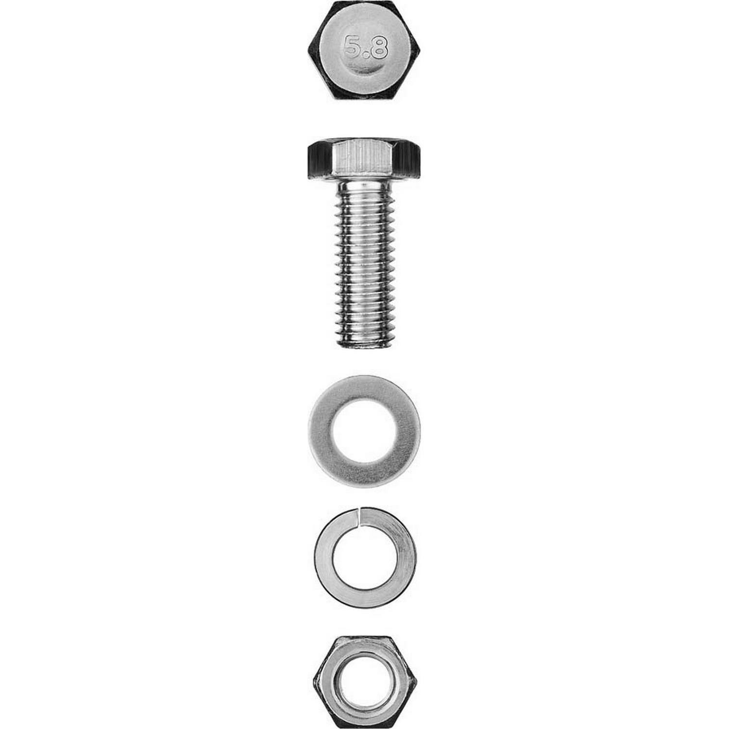 Болт (DIN933) в комплекте с гайкой (DIN934), шайбой (DIN125), шайбой пруж. (DIN127), M6 x 16 мм, 12 шт, ЗУБР