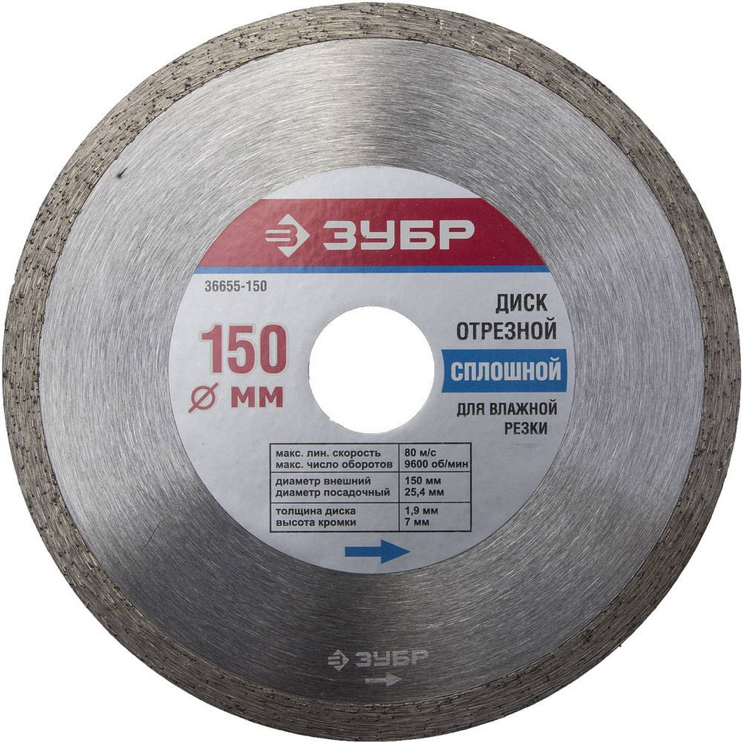 150 мм, диск алмазный отрезной сплошной по керамограниту, мрамору, плитке, ЗУБР {36655-150}