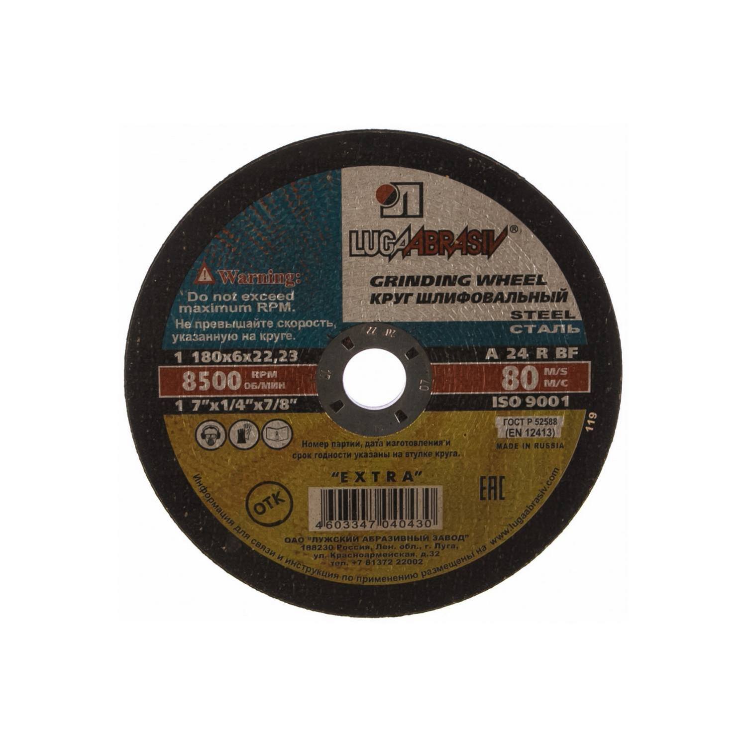 Круг шлифовальный абразивный "Луга" по металлу, 180х6х22,23мм {3650-180-06}