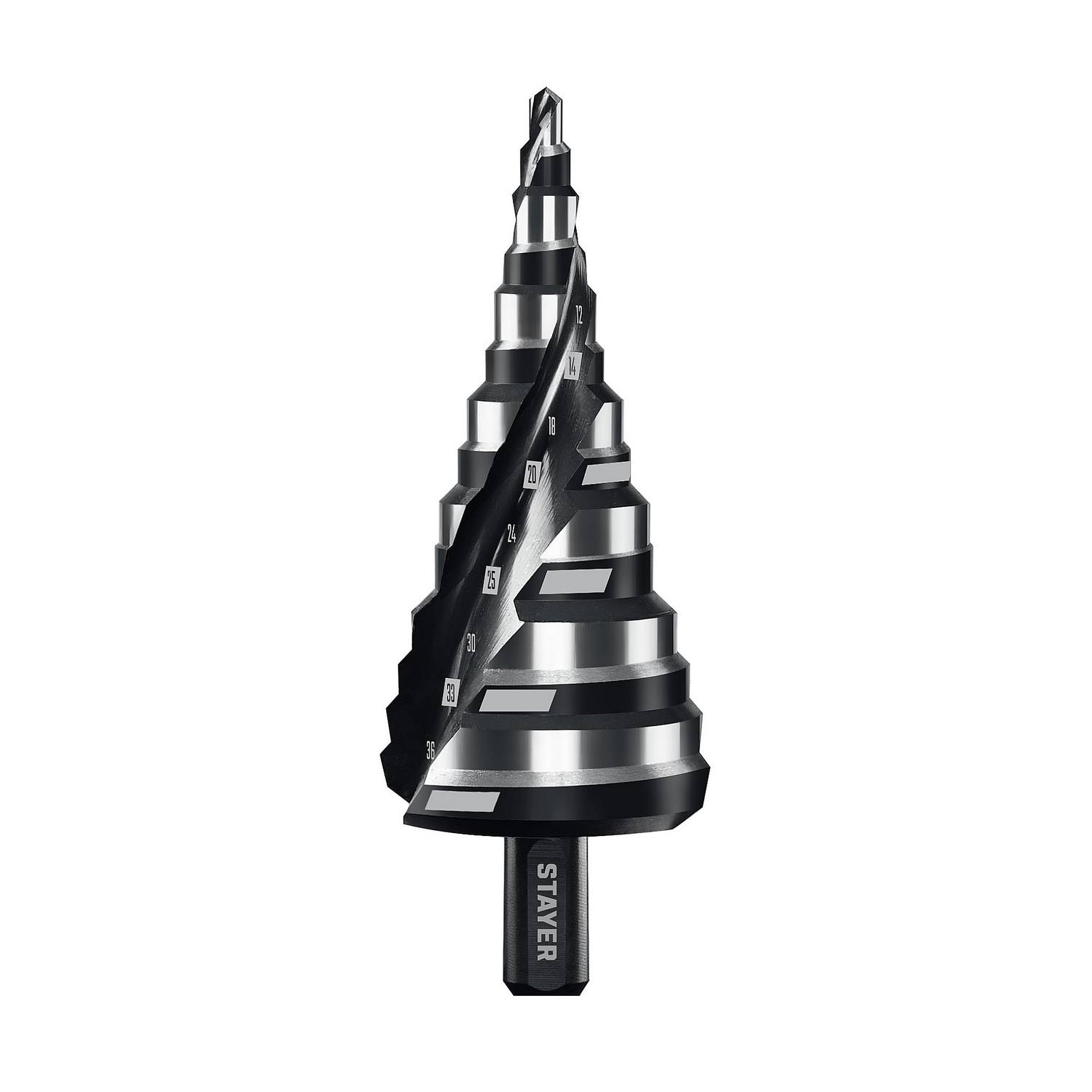 STAYER Pro-Max 4-39мм, 14 ступеней, винтовая спираль, сверло ступенчатое {29661-4-39-14}