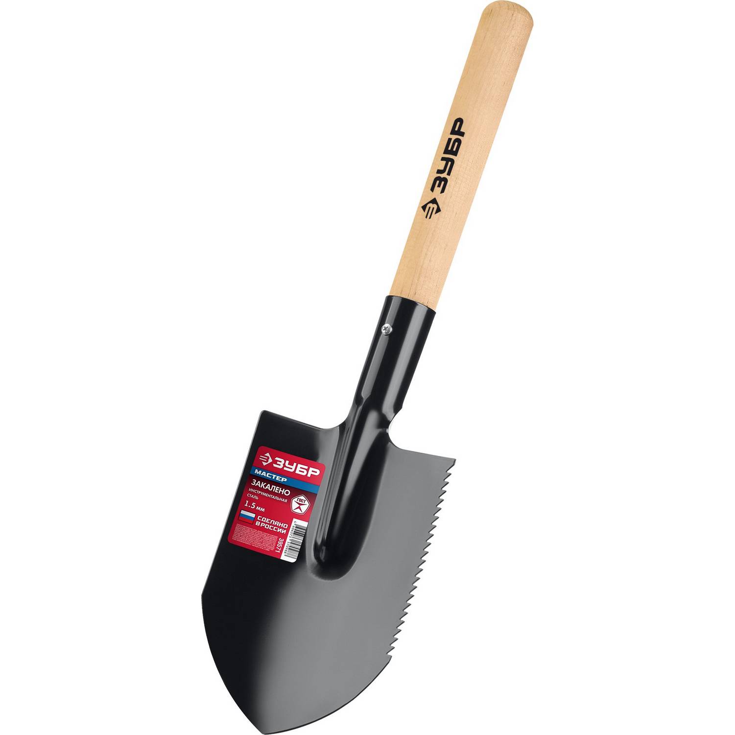 ЗУБР МАСТЕР, 210х154х550мм, полотно 1.5мм, закалено, дерев. черенок высш. сорт, туристическая лопата {39571}