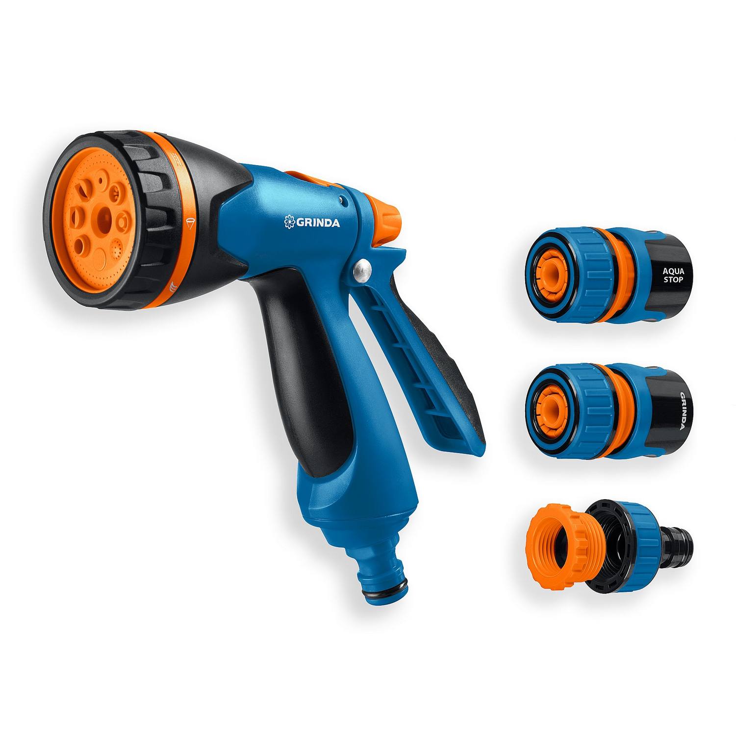 GRINDA B-812, питолет поливочный B-8, коннектор 1/2, конектор 1/2 с автостопом, адаптер с внутр. резьбой 1/2 х 3/4, набор поливочный PROLine {429114}