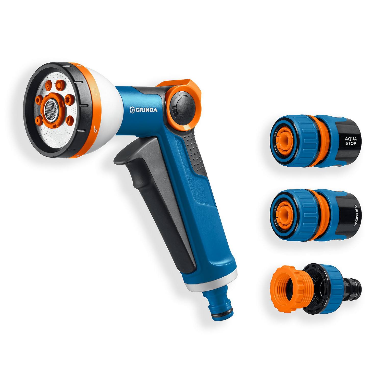 GRINDA Х-812, питолет поливочный X-8, коннектор 1/2, конектор 1/2 с автостопом, адаптер с внутр. резьбой 1/2 х 3/4, набор поливочный PROLine {429168}