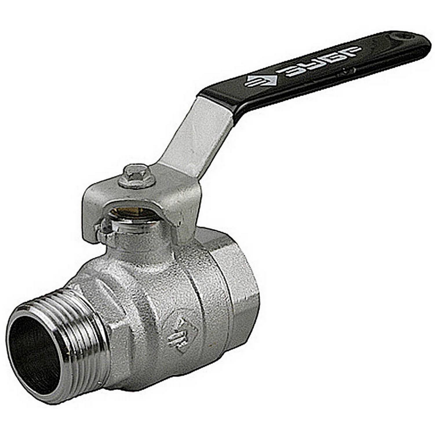 Кран шаровой ЗУБР полнопроходной "мама-папа", ручка, хромиров латунь, 1/2" {4-51321-C-1/2}