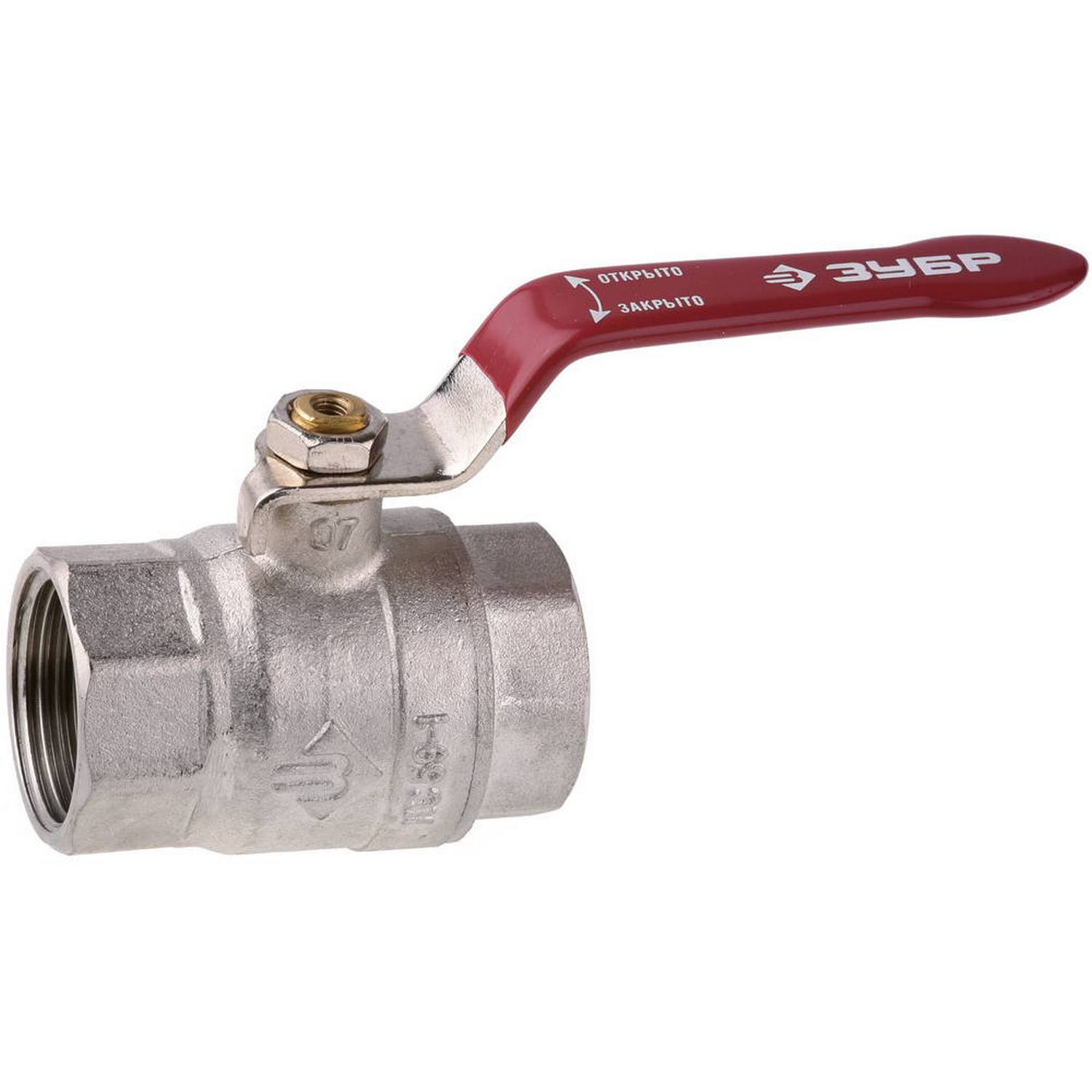 Кран ЗУБР шаровой 1" полнопроходной "мама-мама", ручка, никелированная латунь {51350-N-1}