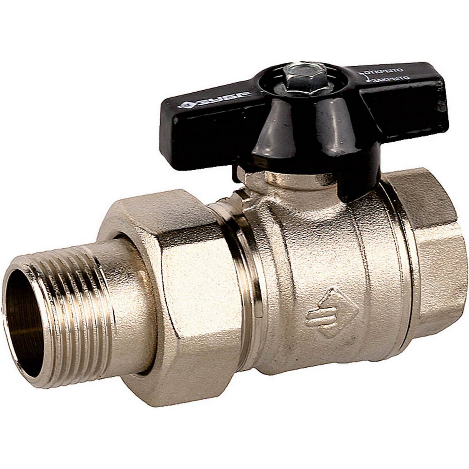 ЗУБР d 3/4", ручка "бабочка", "мама-папа", полнопроходной шаровой кран с накидной гайкой (4-51327-C-3/4)