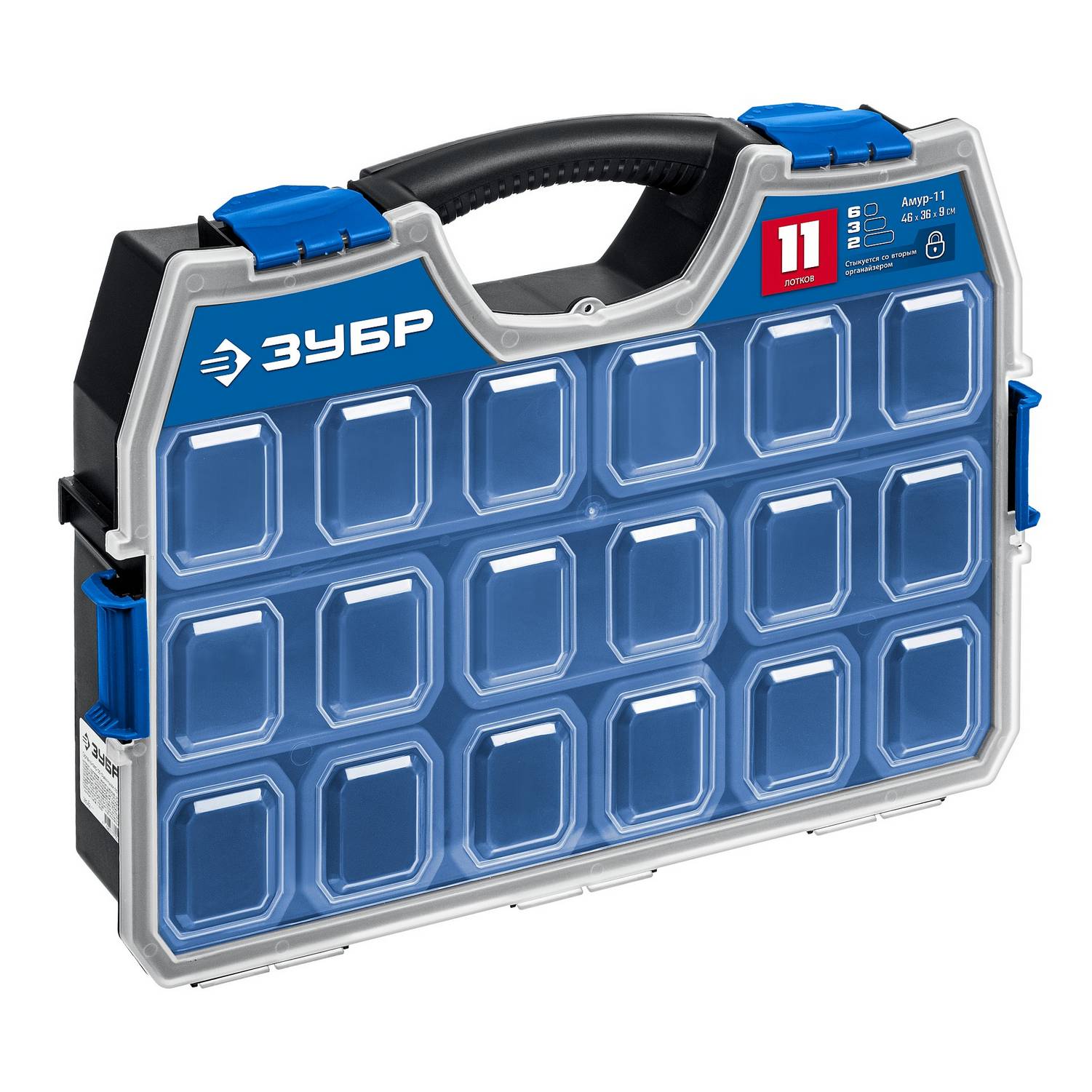 ЗУБР АМУР-11, 462 х 365 х 92 мм, Пластиковый органайзер со съемными лотками {38042-11}
