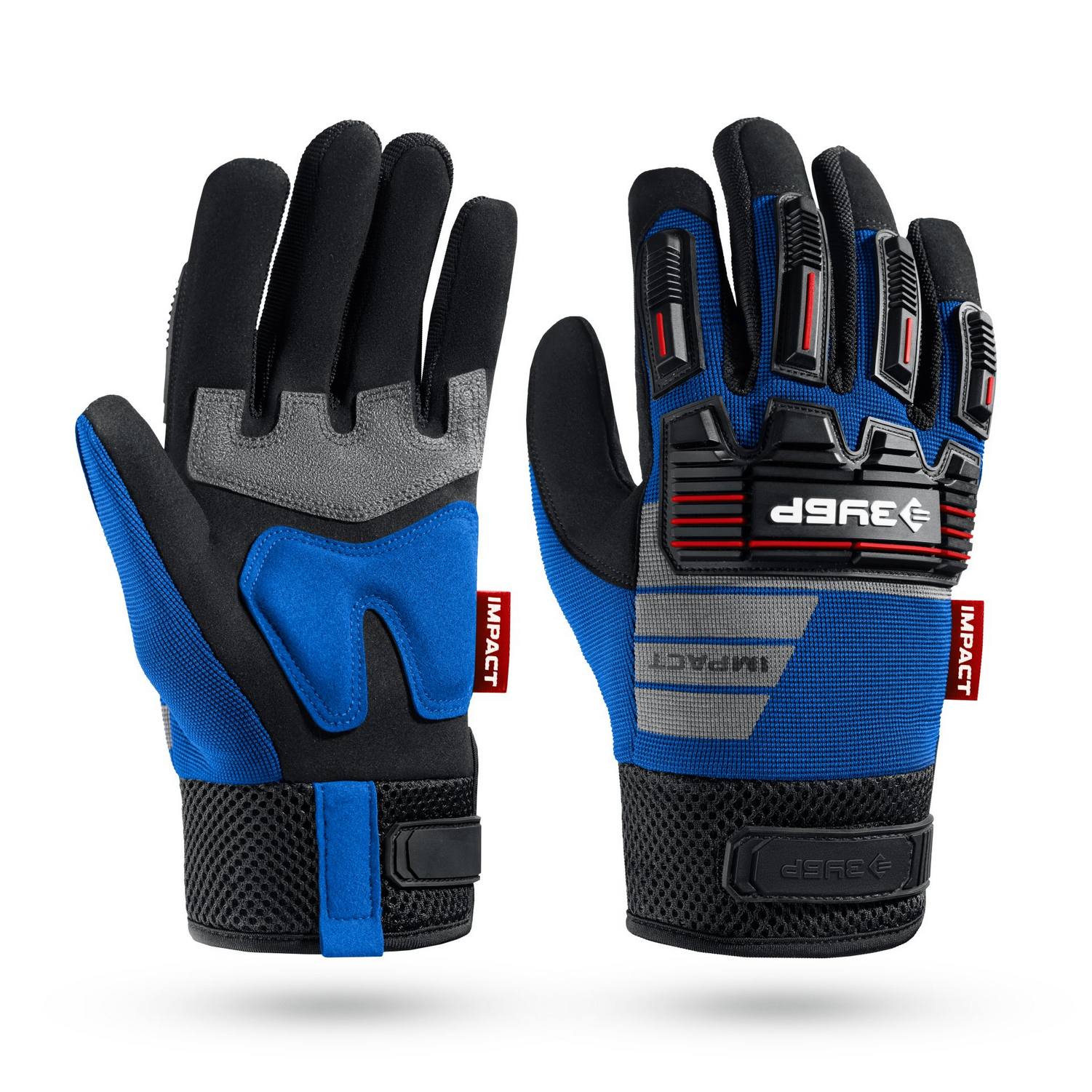 ЗУБР IMPACT р.L (9), синие, профессиональные комбинированные перчатки, антивибрационные, противоударные, Профессионал (11476-L)