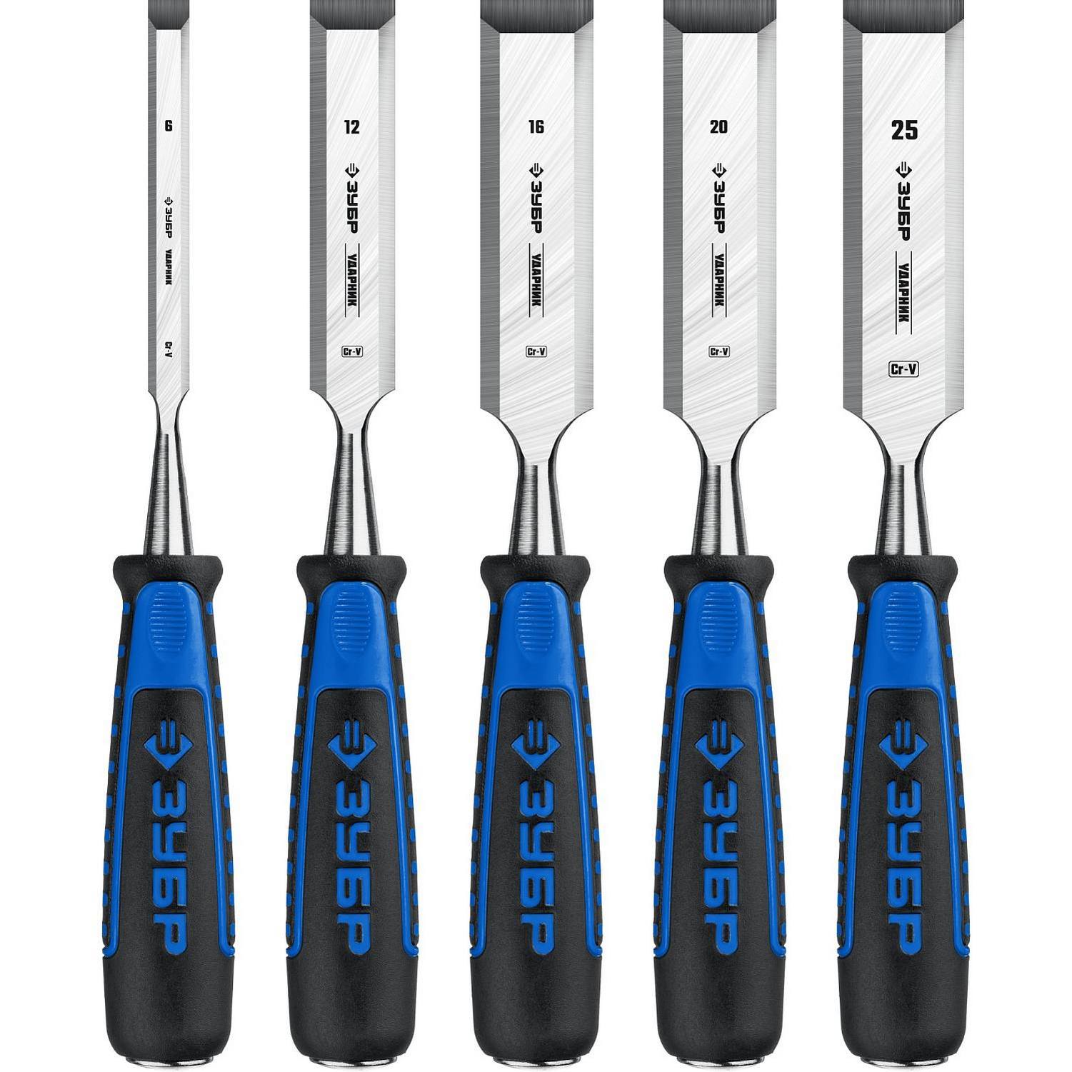 ЗУБР Ударник набор стамесок-долот с двухкомпонентной рукотяткой, 5 шт {18097-H5}